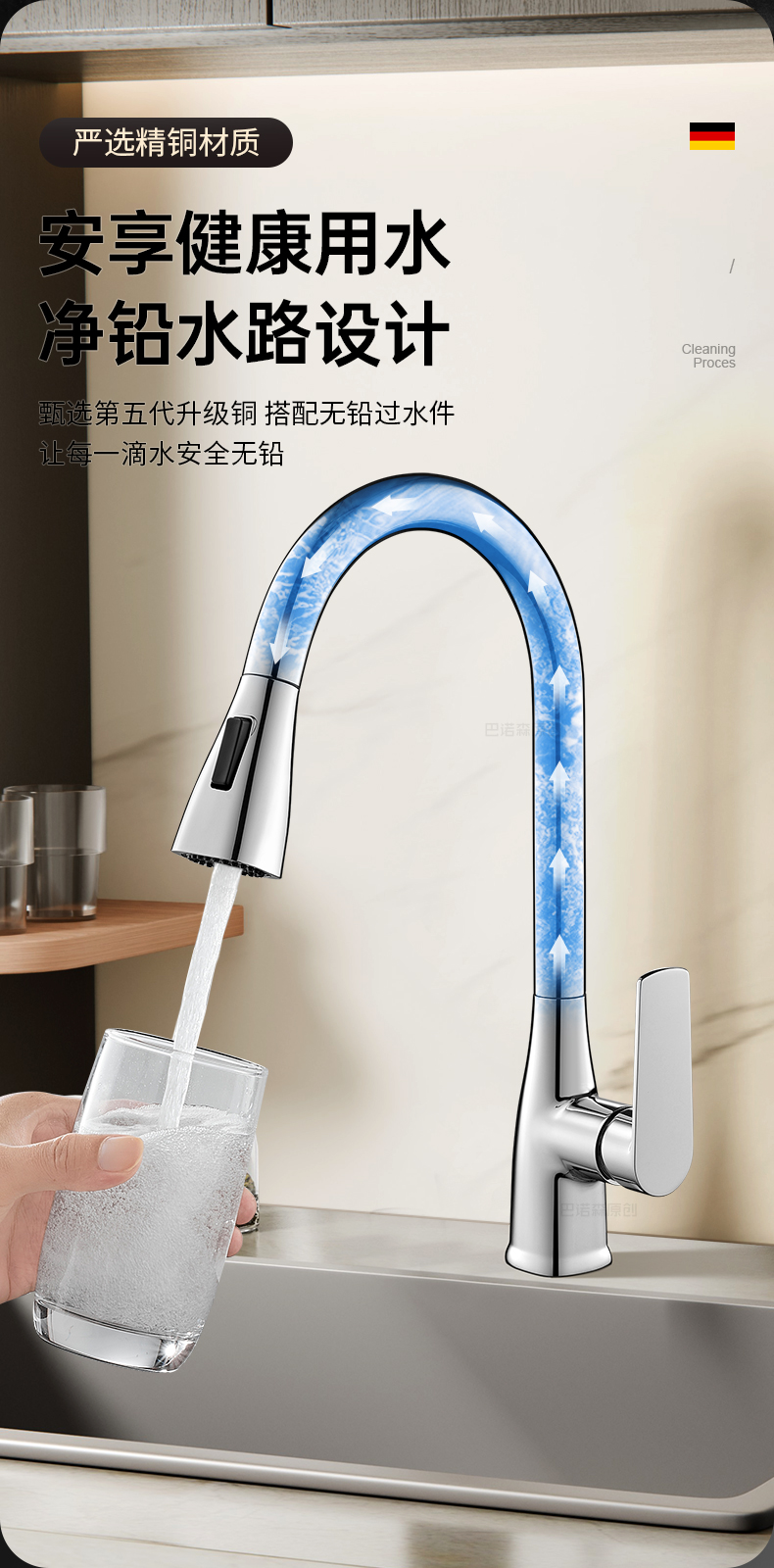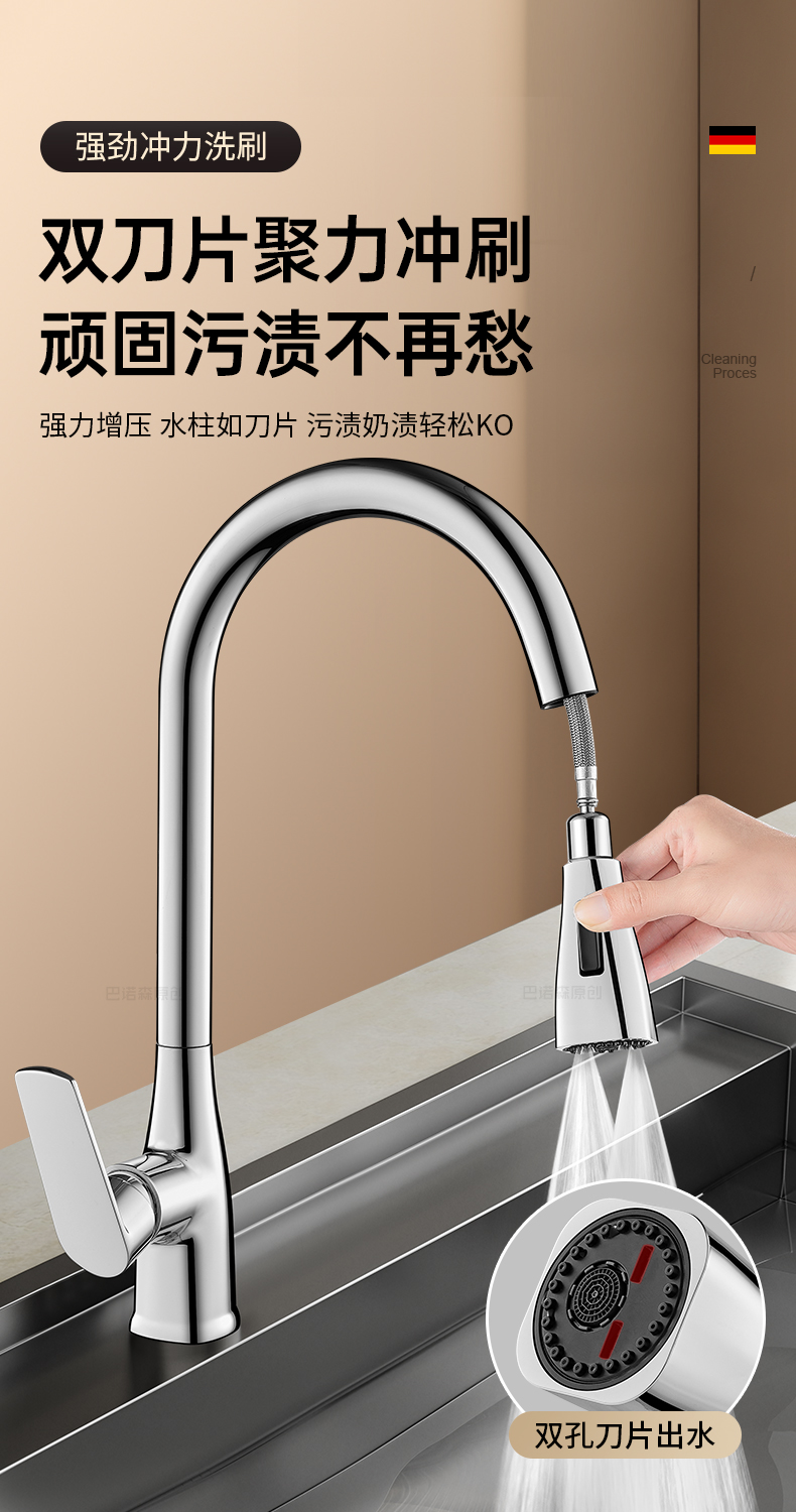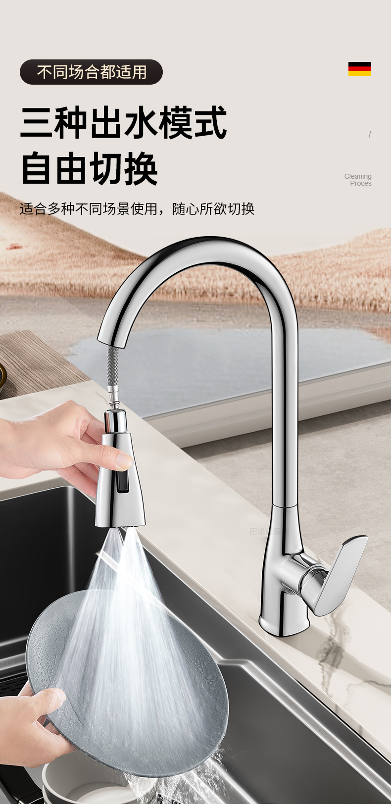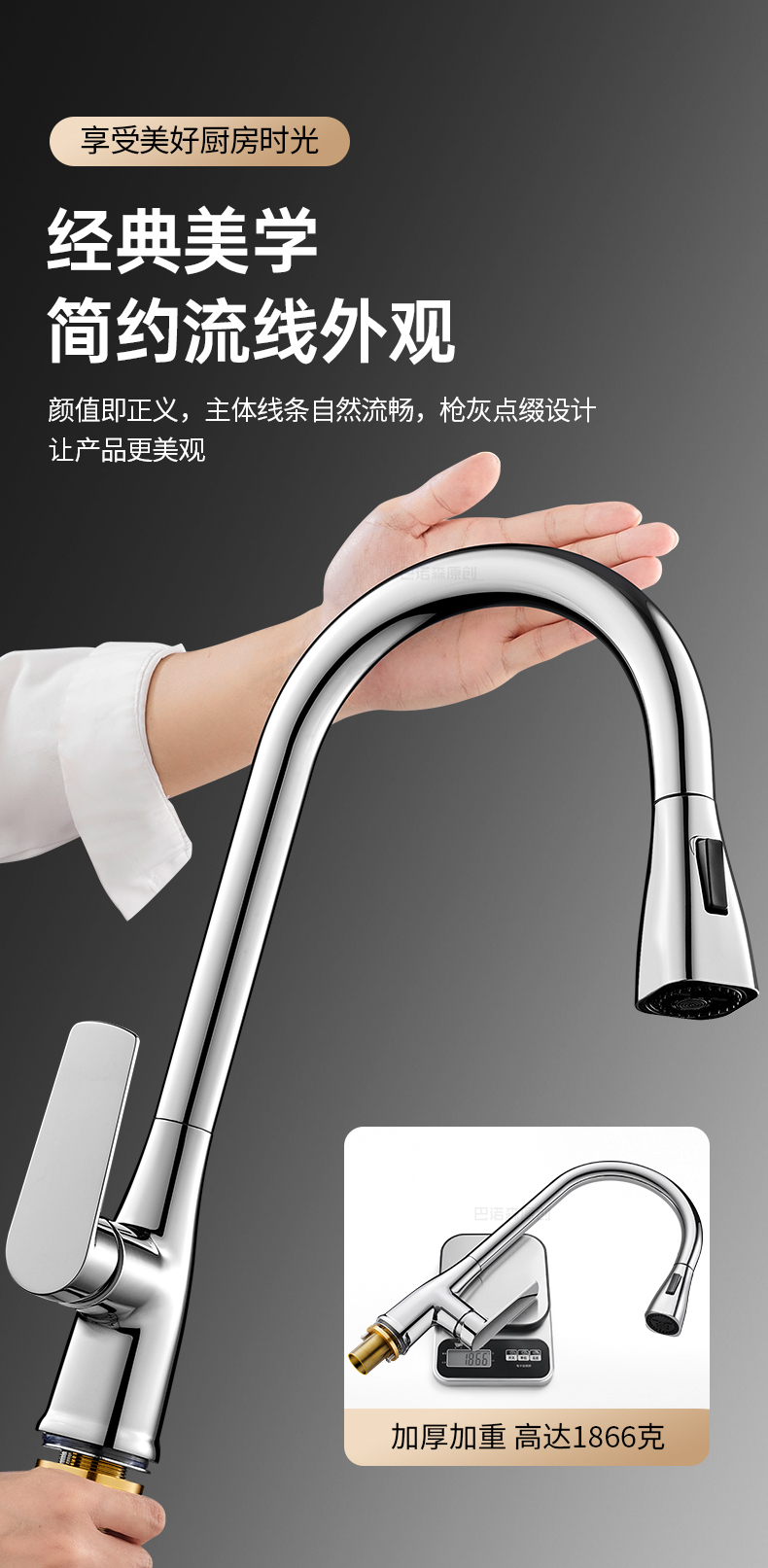【太空银】全铜两档抽拉◆万向旋转◆防溅水(质保20年)