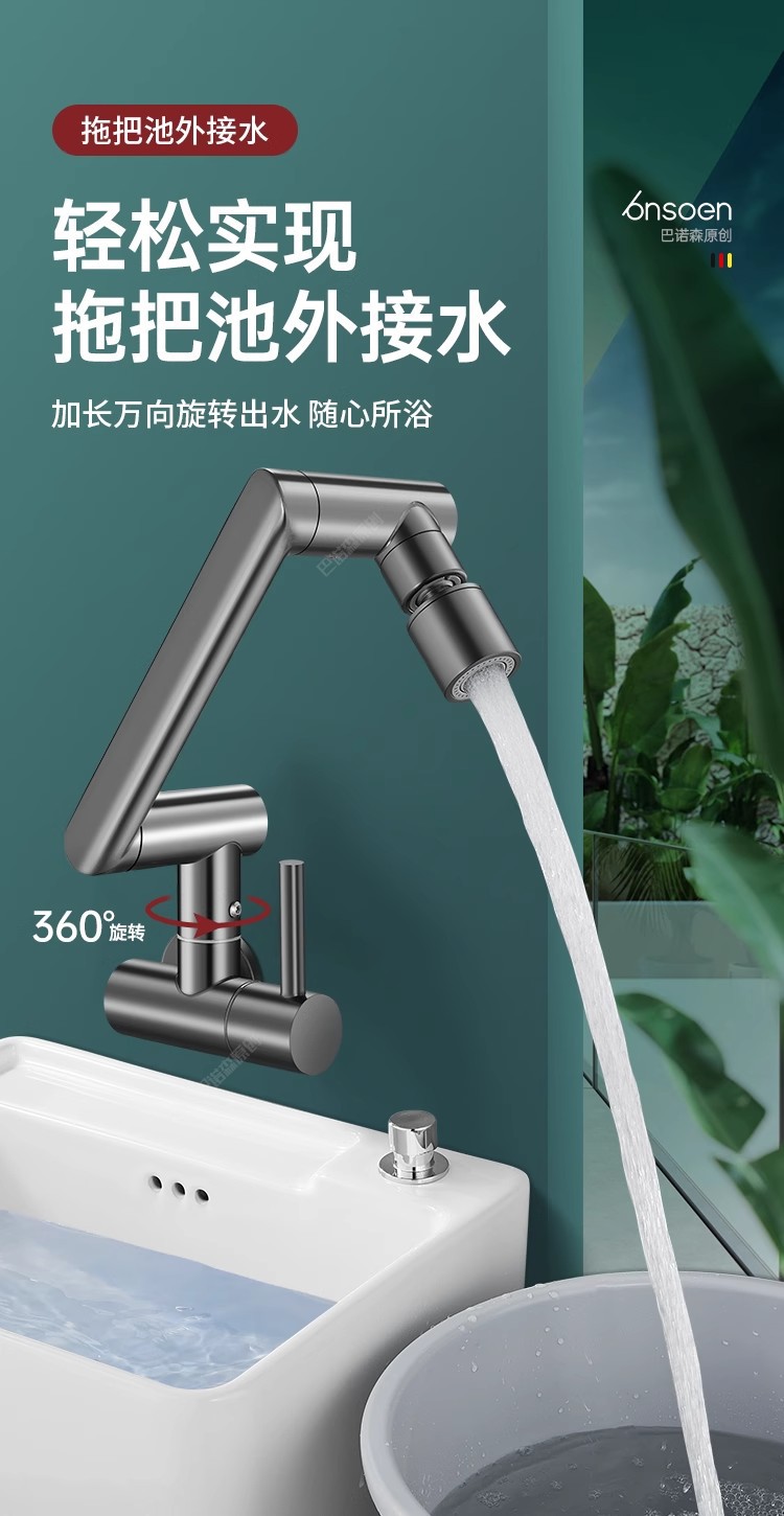 拖把池加长水龙头阳台洗衣池入墙式单冷万向可旋转可折叠龙头
