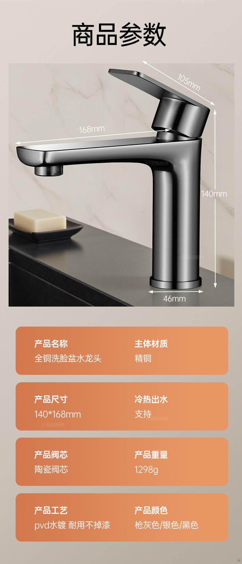 - 单冷豪华款【全铜加厚●枪灰色】通用安装(30年质保)