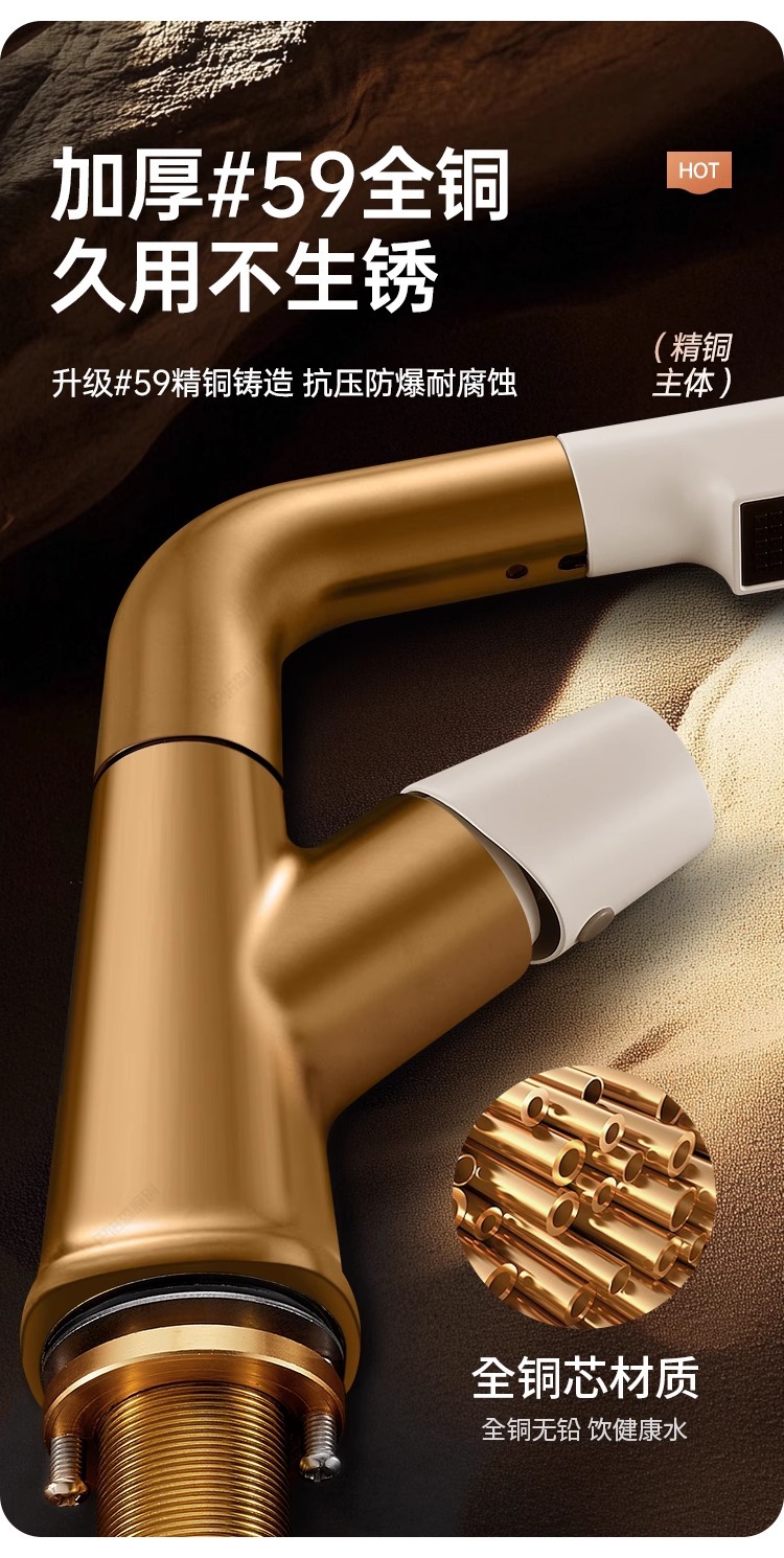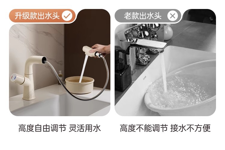 奶油风洗脸盆水龙头冷热二合一卫生间洗手面盆浴室家用升降抽拉式