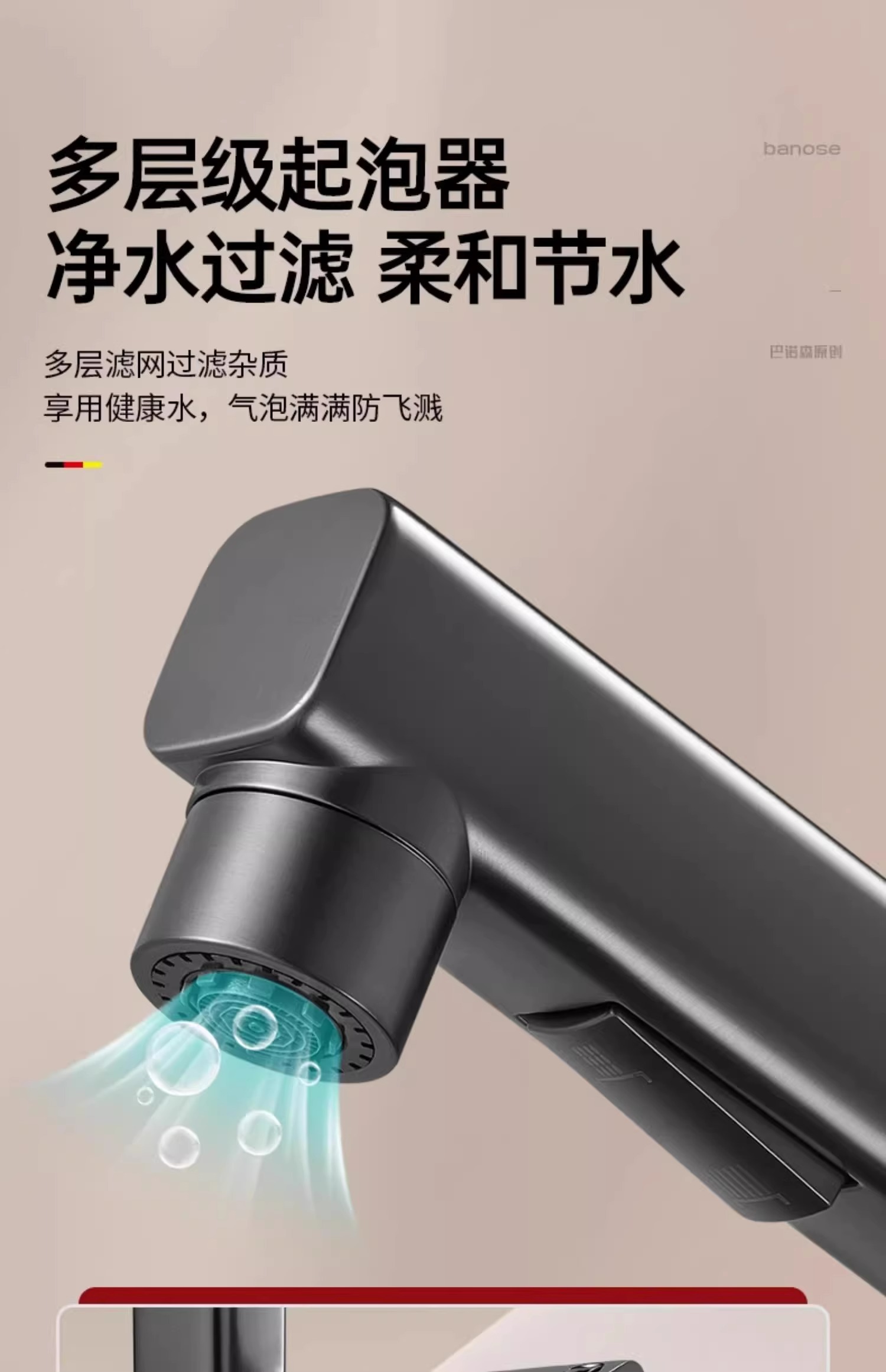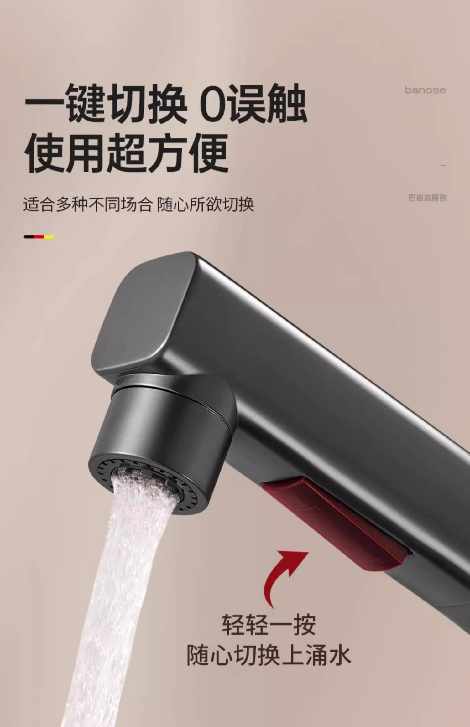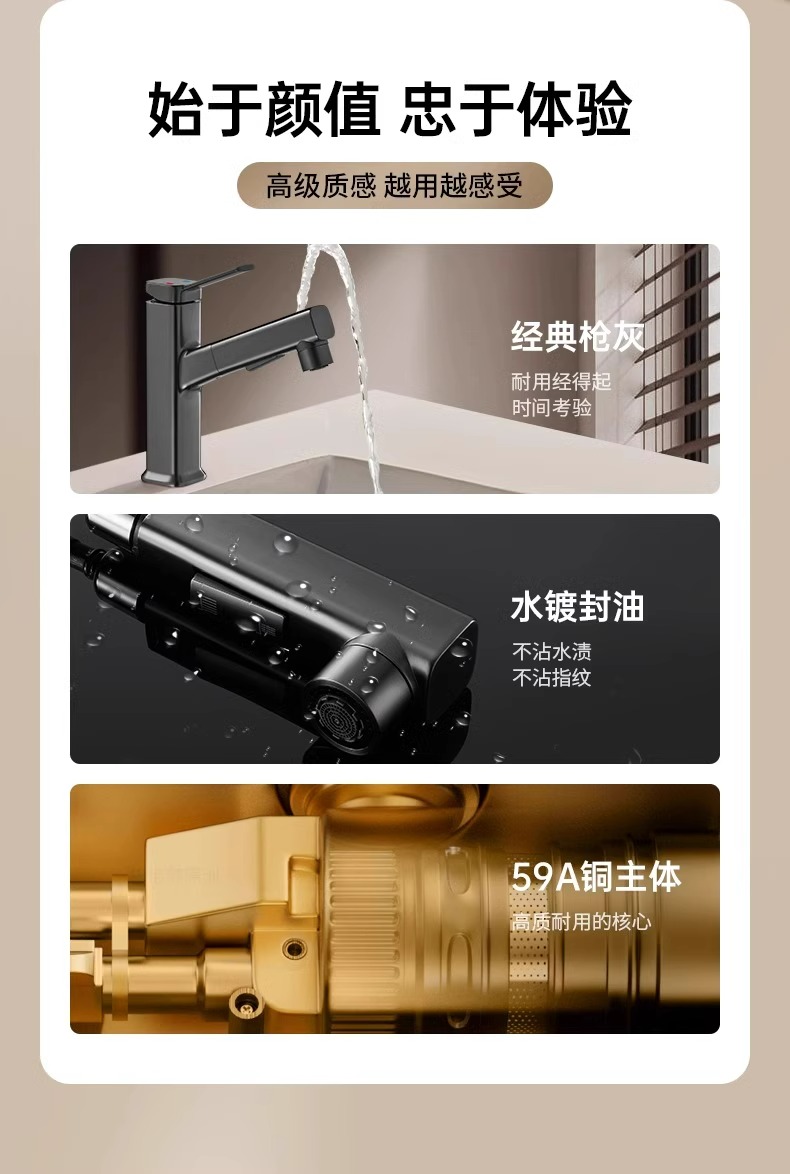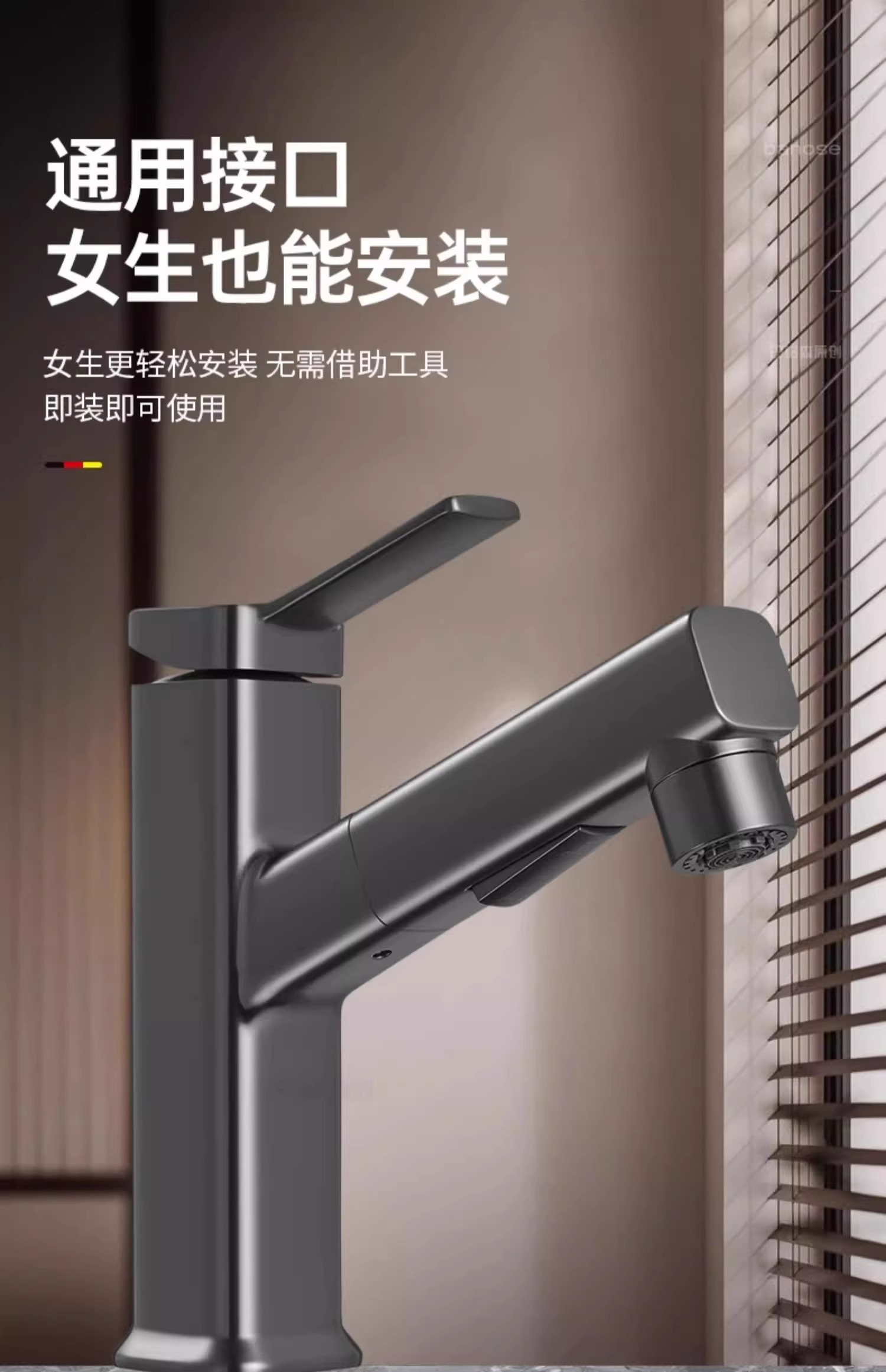 全铜(枪灰色方体)◆抽拉式3档(送原装进水管)