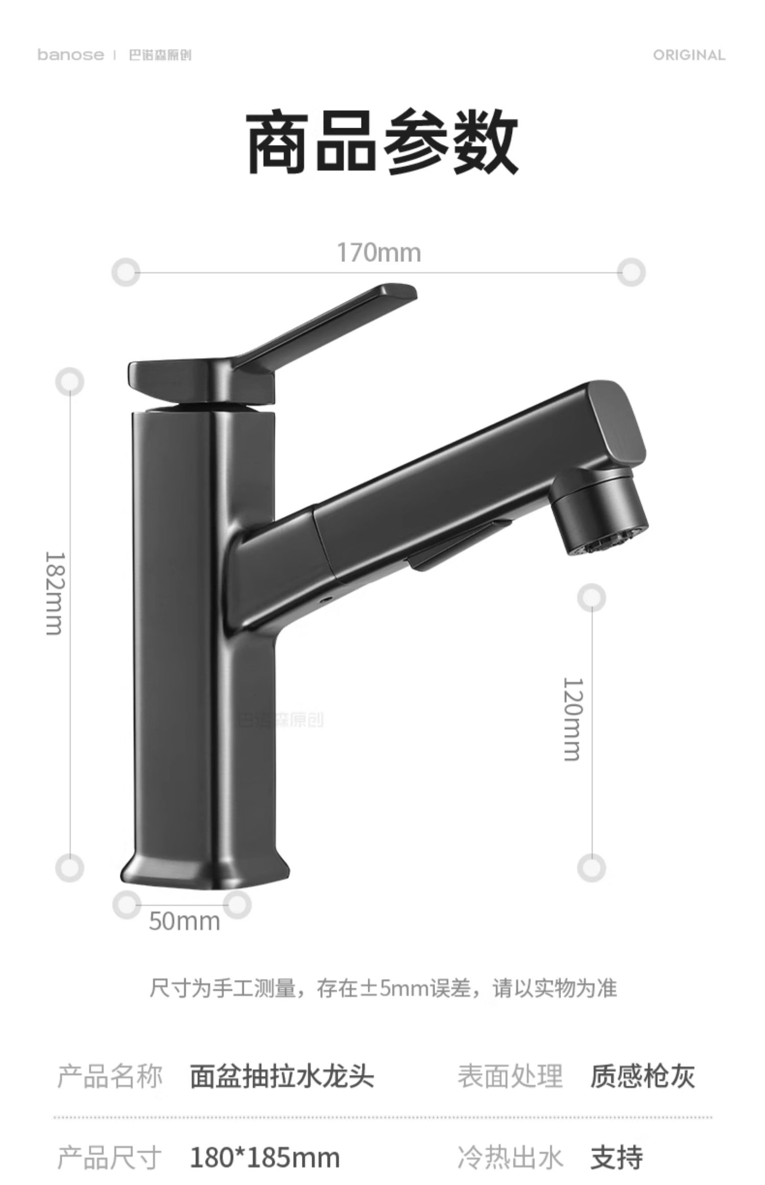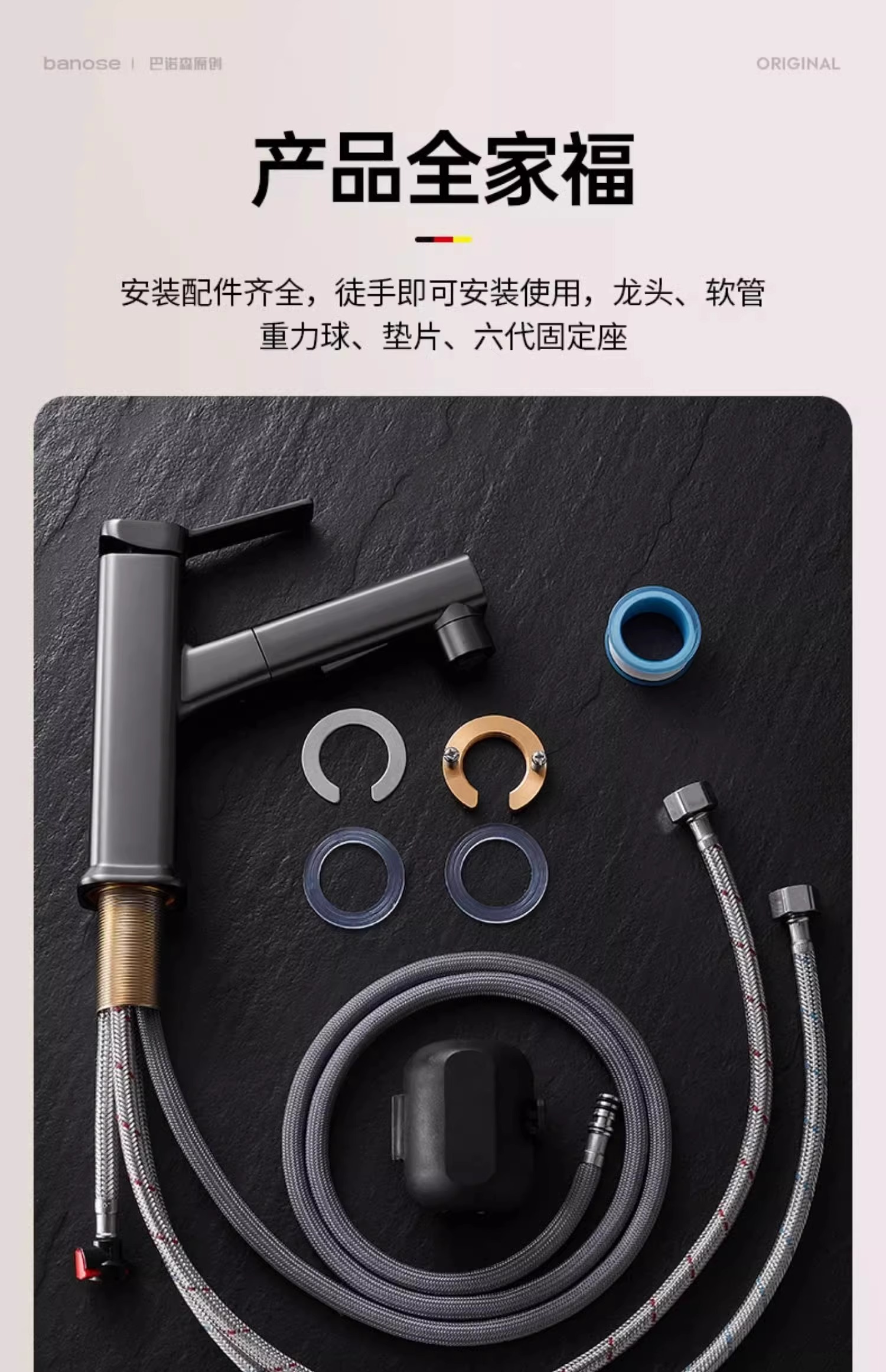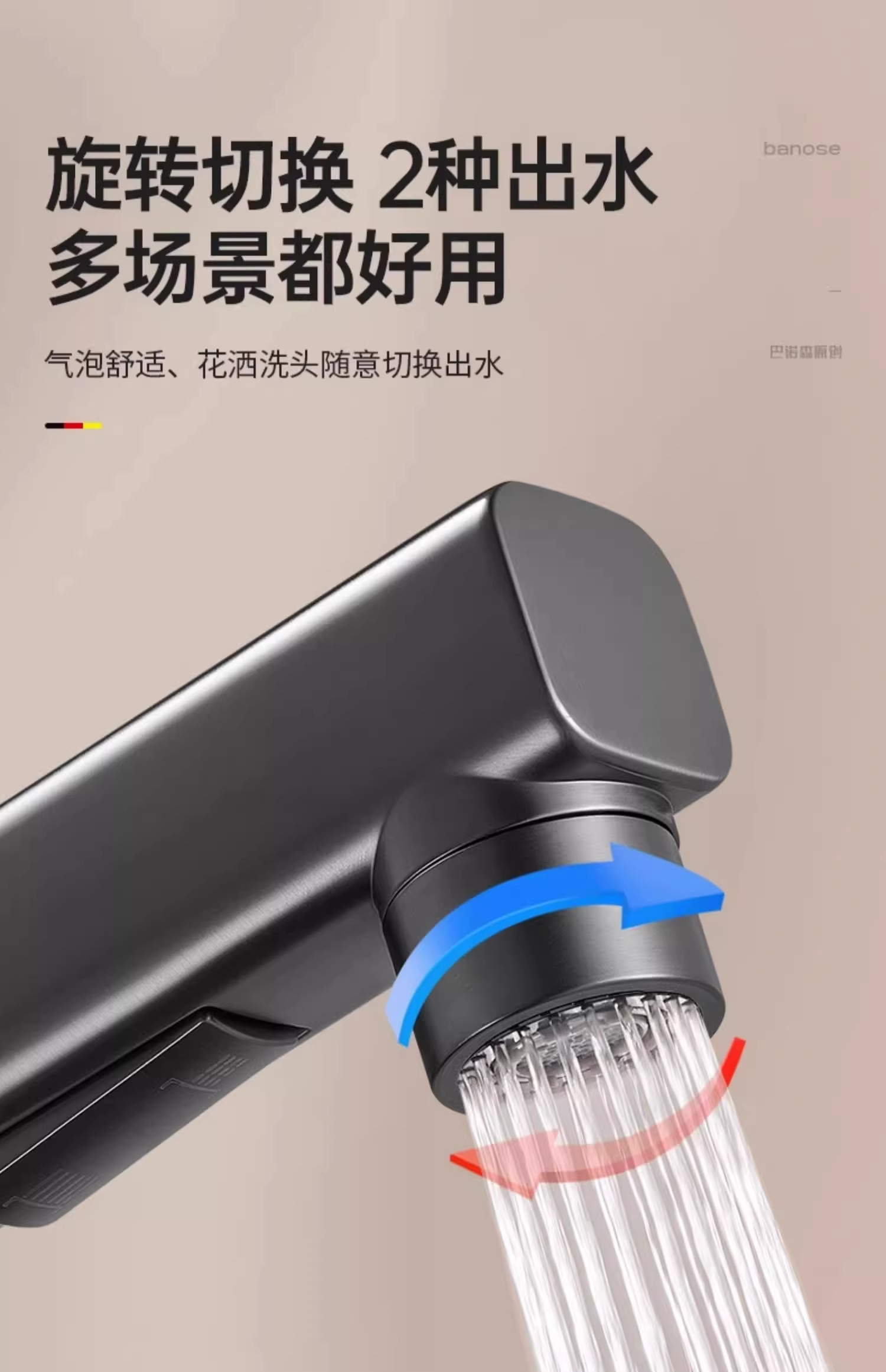 全铜(枪灰色方体)◆抽拉式3档(送原装进水管)