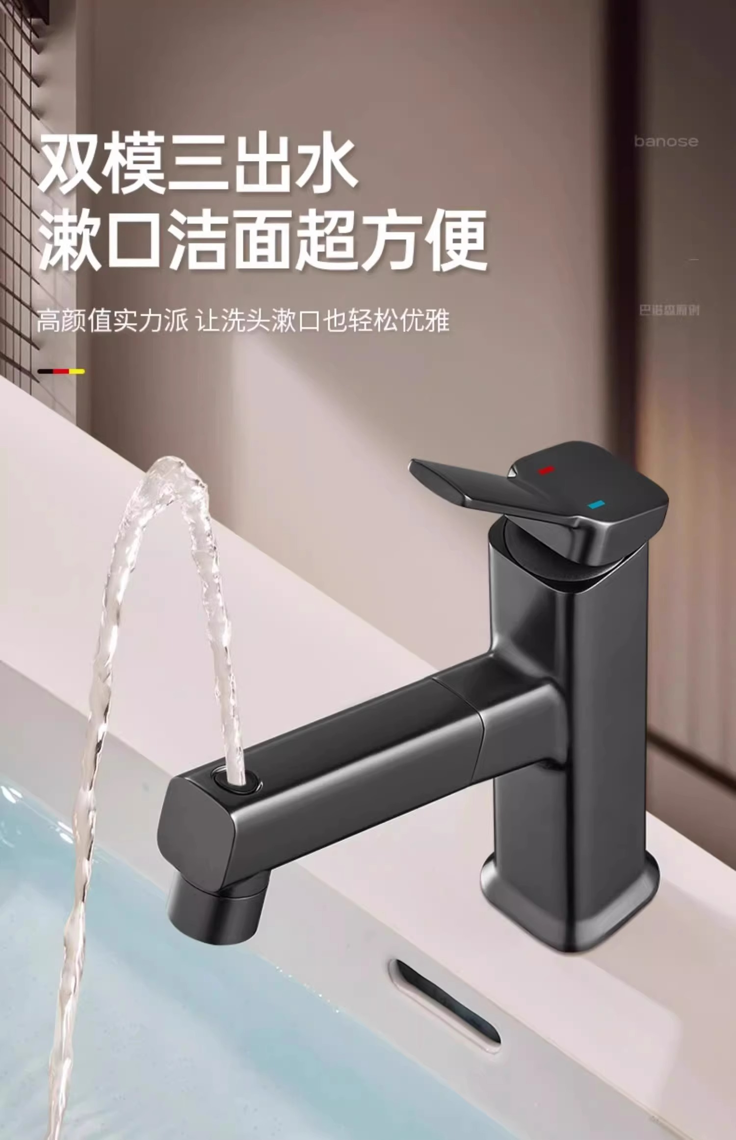 全铜(黑色方体)◆抽拉式3档(送原装进水管)