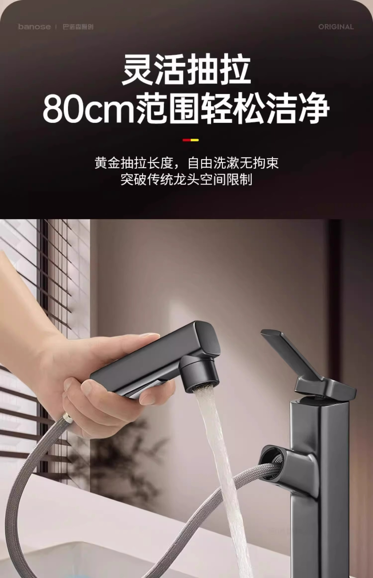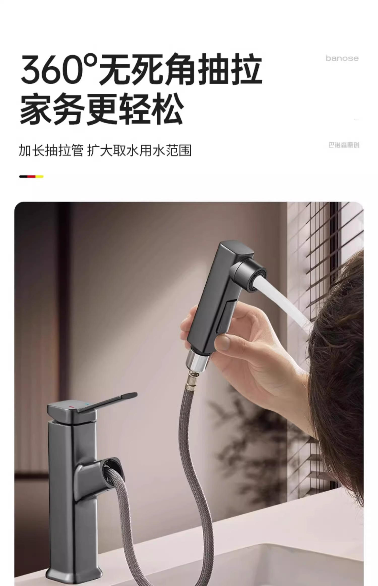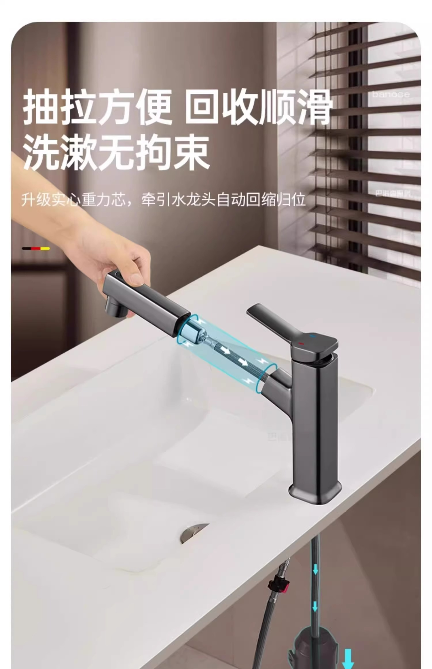 卫生间洗脸盆水龙头冷热抽拉式两用浴室柜洗手盆面台盆家用全铜