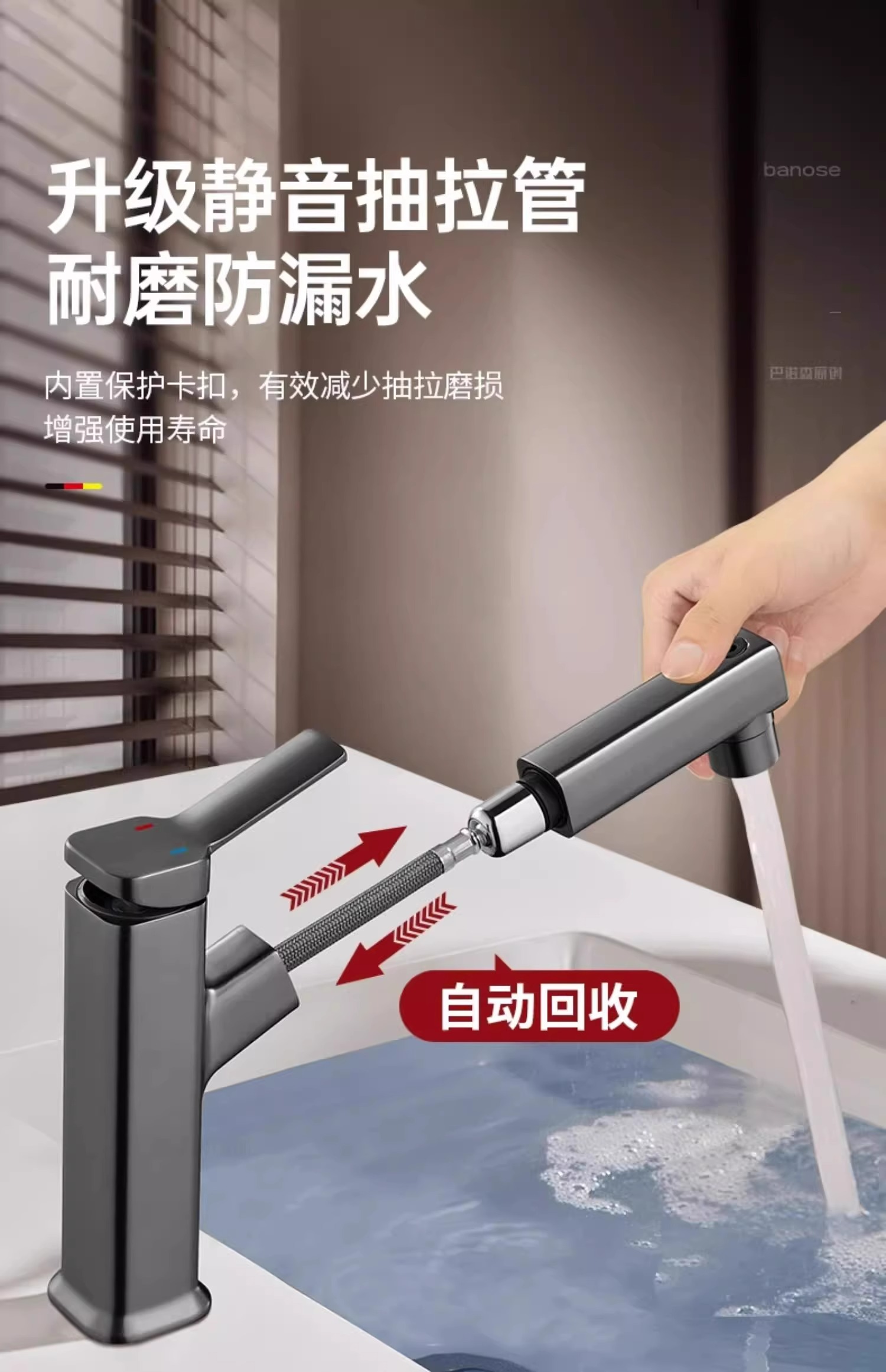 升降洗手盆水龙头卫生间洗脸盆抽拉式冷热水全铜家用台盆面盆龙头
