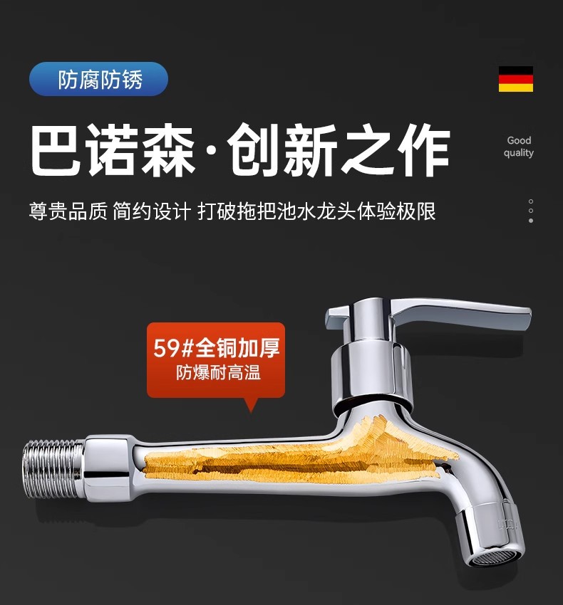 全铜阳台加长水龙头单冷家用洗衣机入墙式拖把池4分加长款