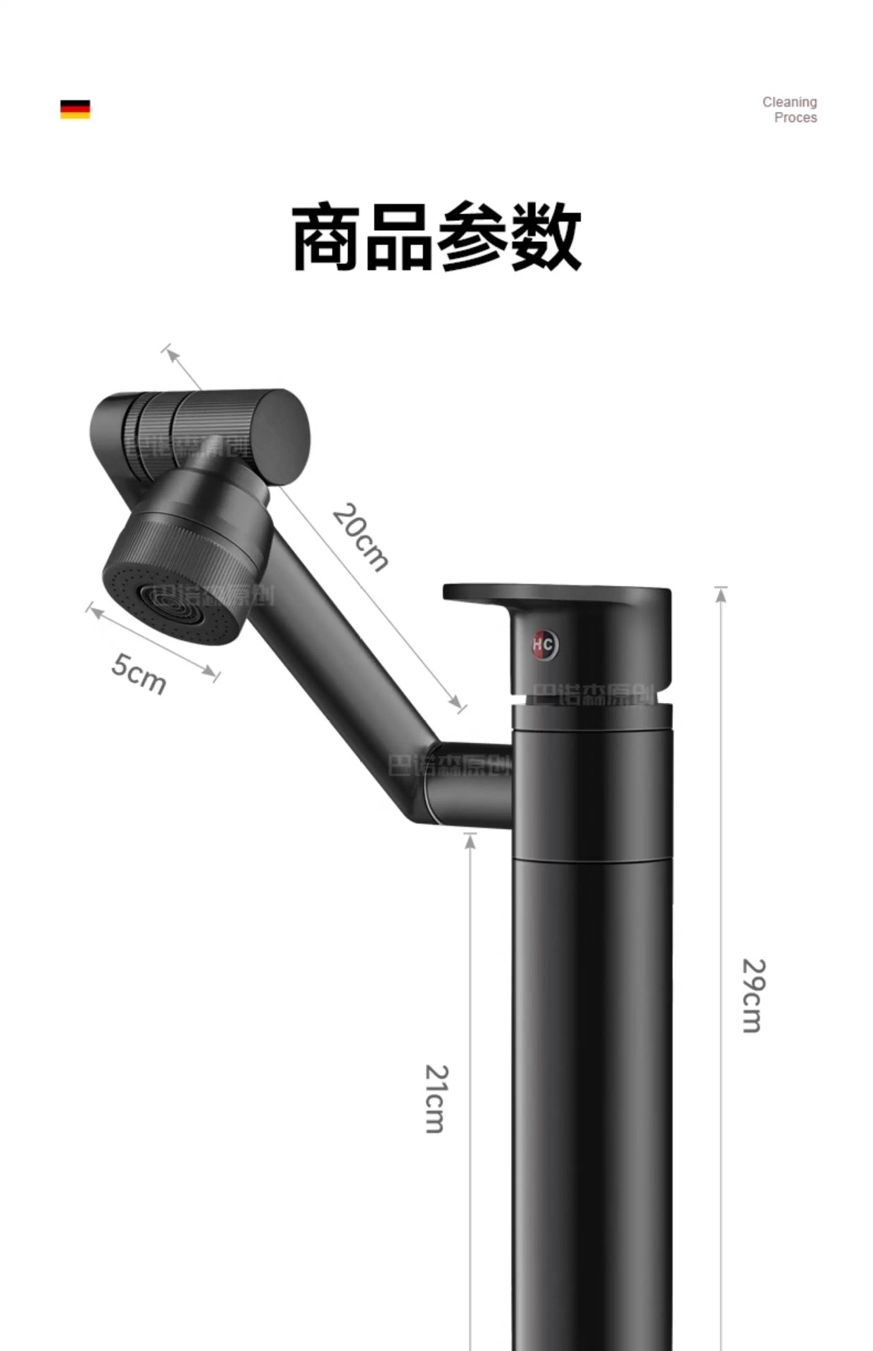 - 加高款30cm【哑光黑-冷热】德系全铜龙头+万向旋转+两档出水