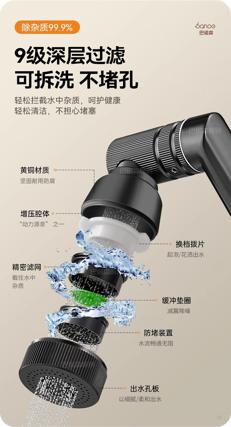 - 加高款30cm【奶油白-冷热】德系全铜龙头+万向旋转+两档出水
