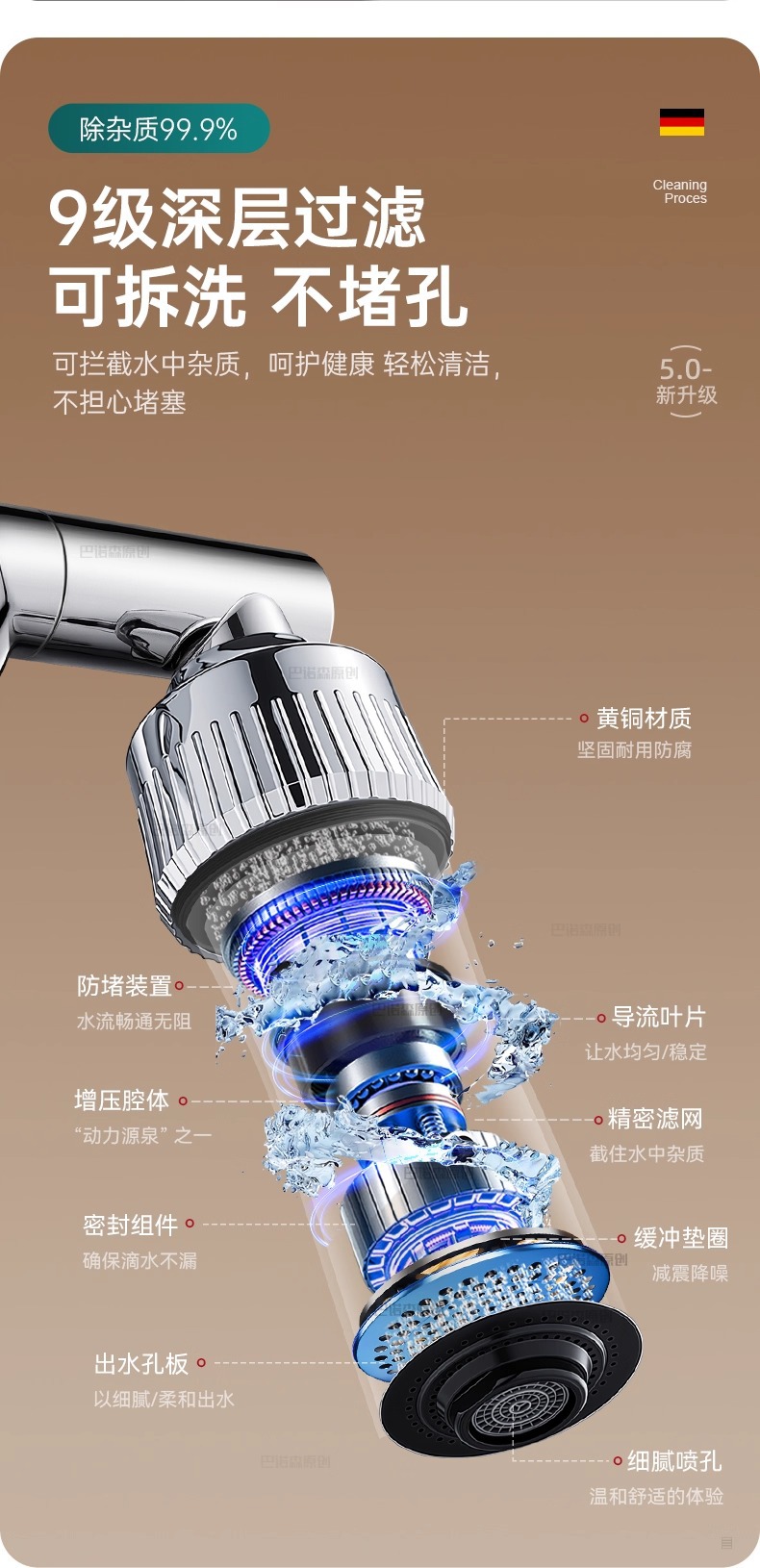 - 【晶钻银-冷热】三档出水 万向旋转 通用安