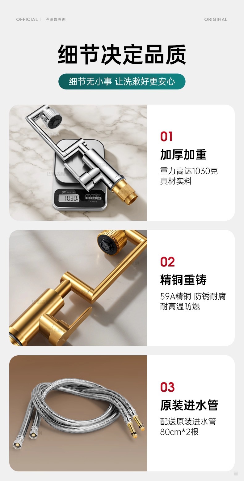 - 【轻奢灰-冷热】三档出水 万向旋转 通用安装