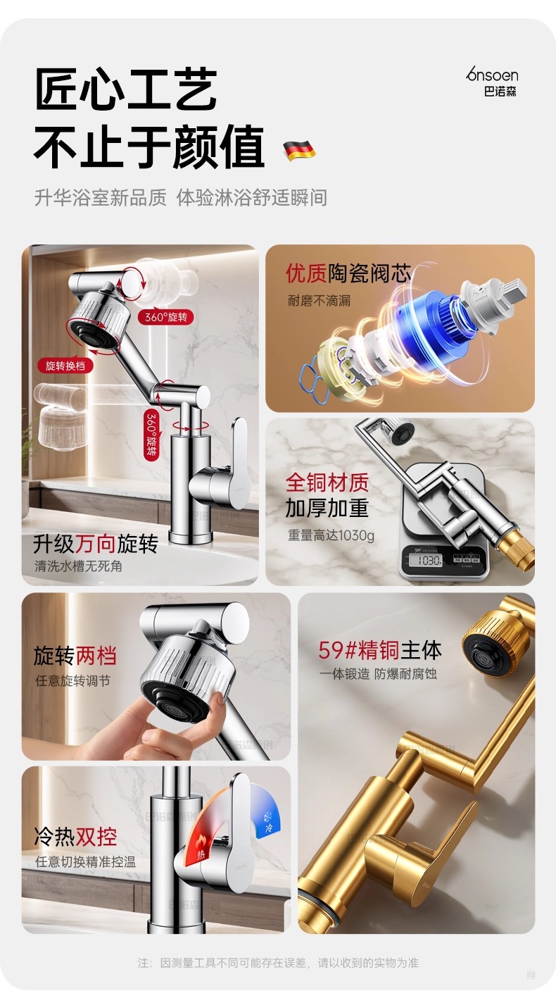 机械臂万向精铜洗脸盆水龙头冷热两用洗手盆卫生间洗脸池面盆家用