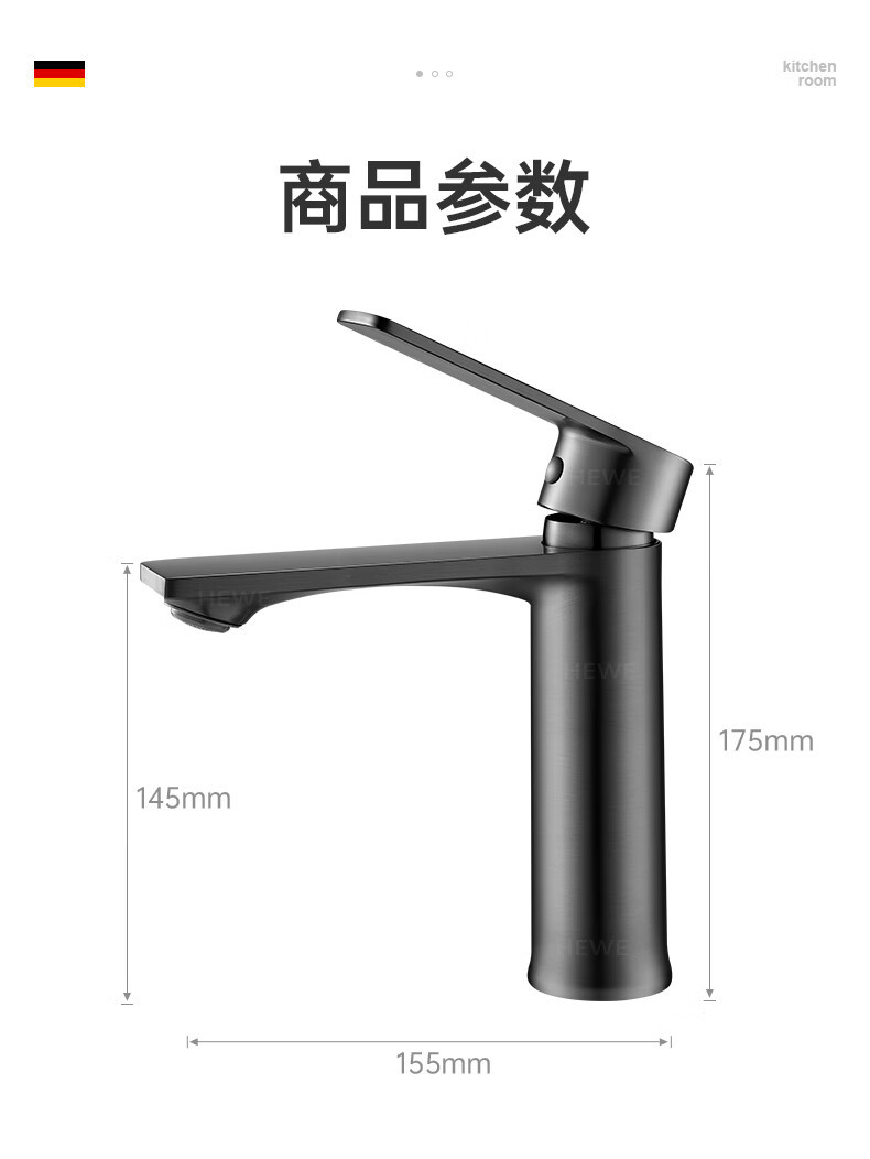全铜防漏【典雅黑*单冷款】(配80cm进水管)