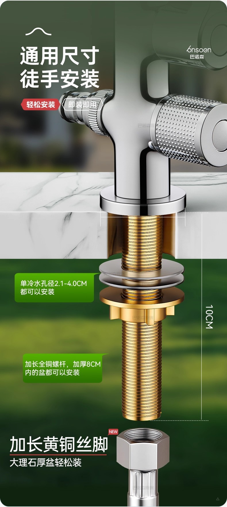 - 银色【双出水-加长脚10cm】全铜单冷●一档出水●防冻防晒