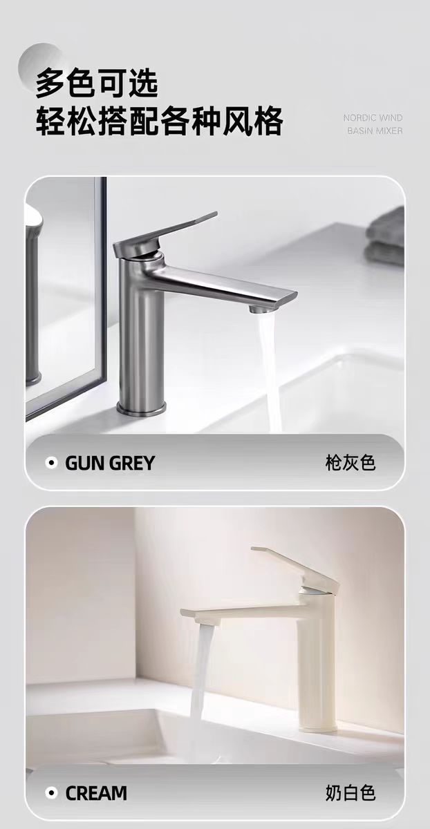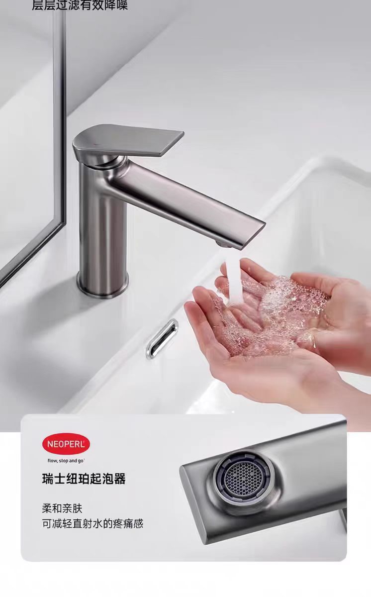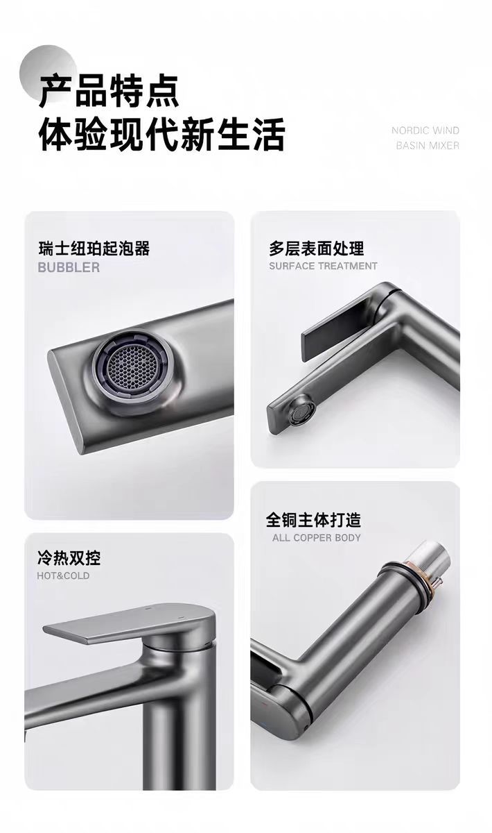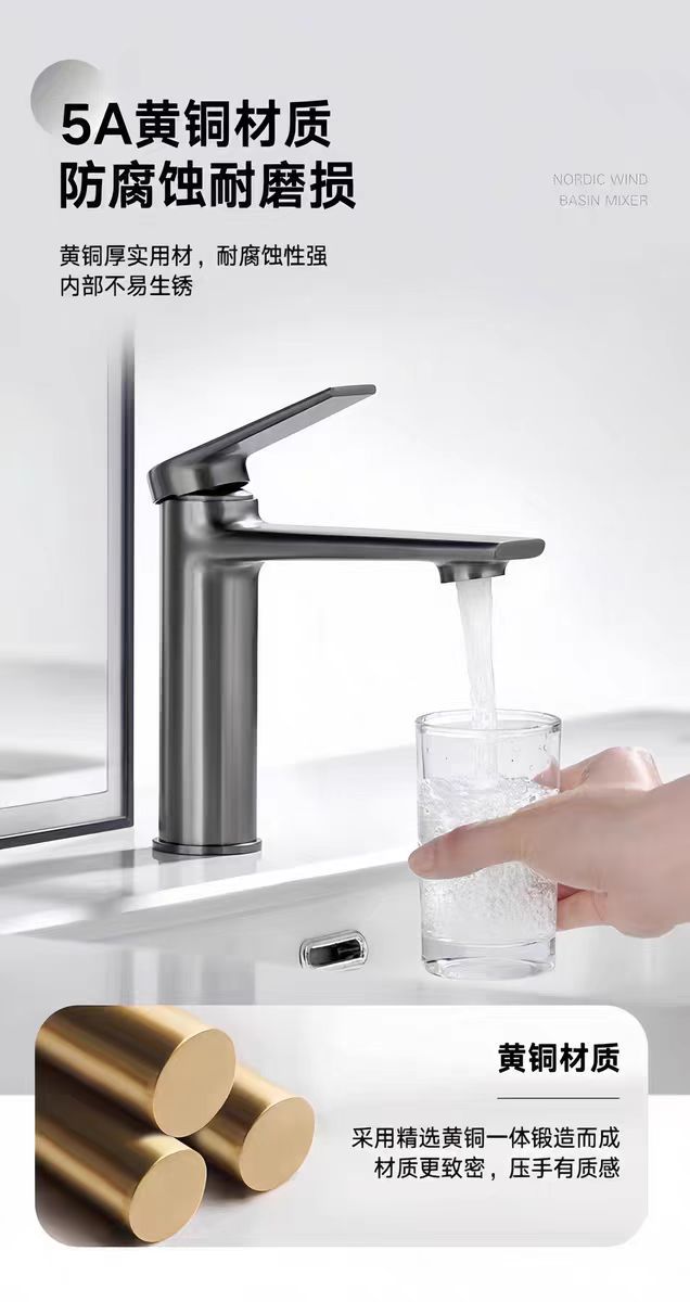 高档全铜枪灰色冷热面盆水龙头家用卫生间浴室台盆酒民宿水龙头