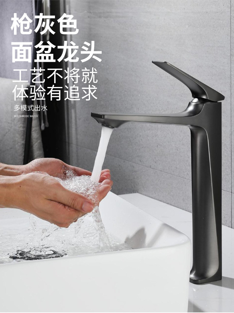 枪灰色面盆冷热水龙头家用浴室柜卫生间洗脸盆洗手盆台上盆奶油风