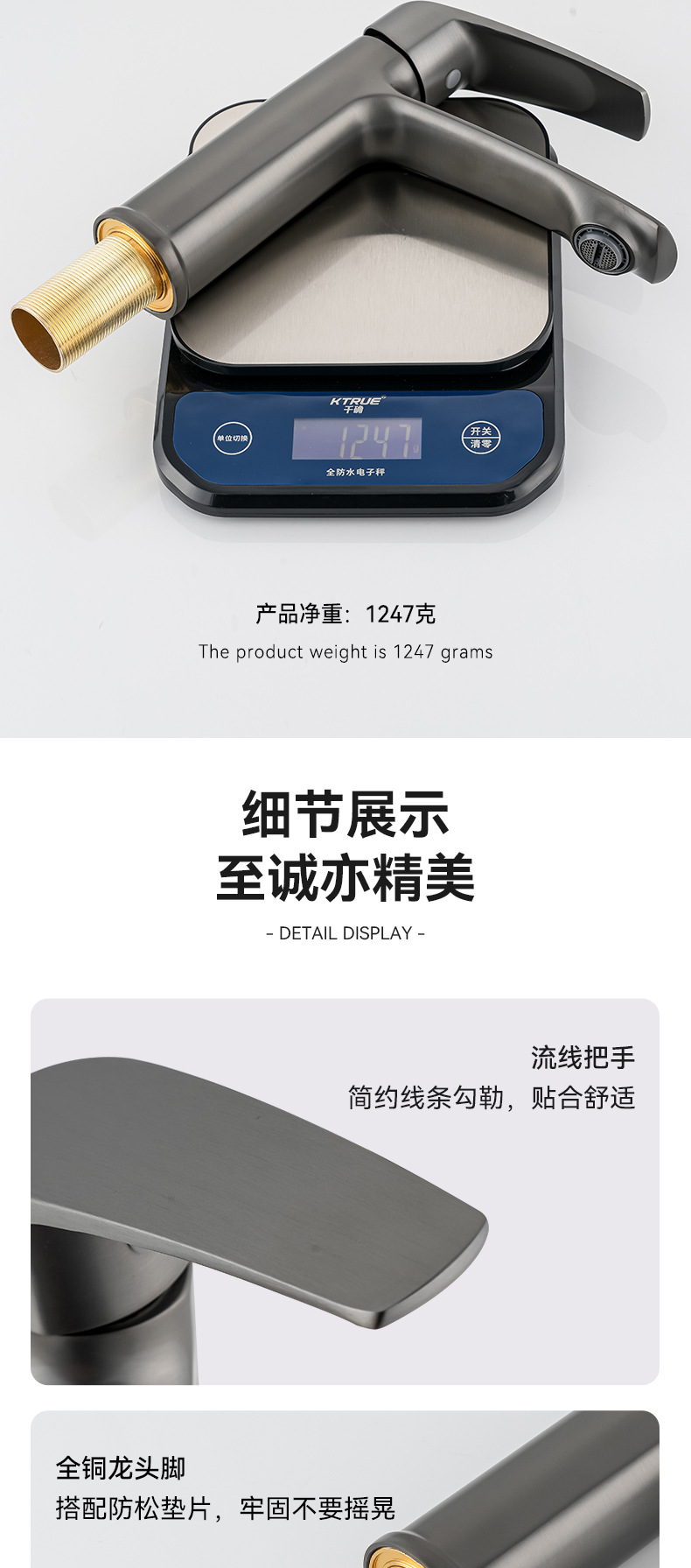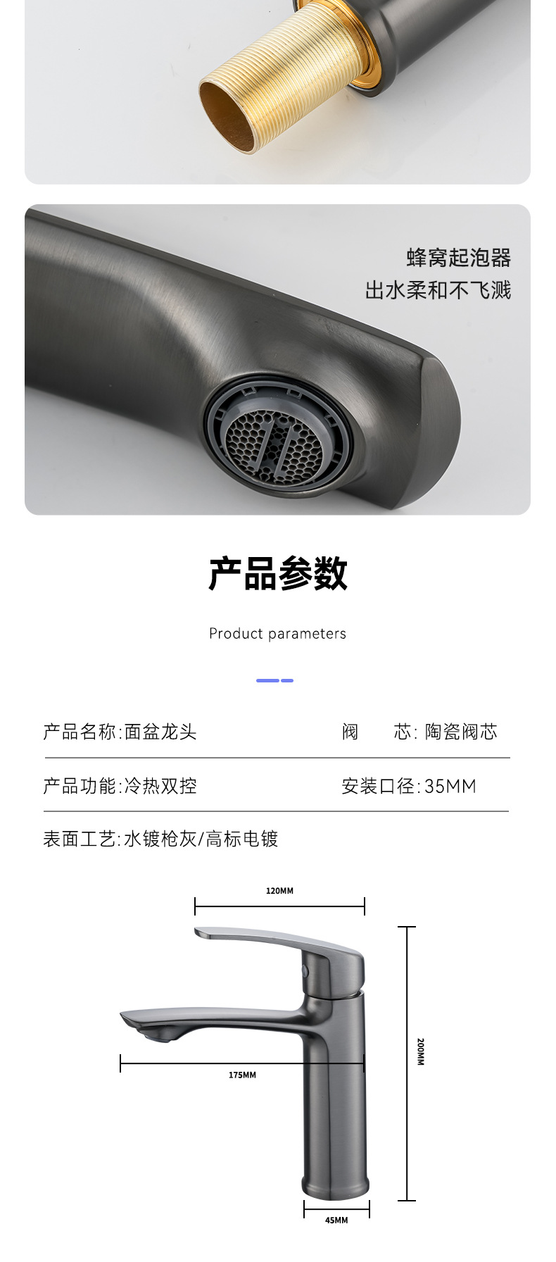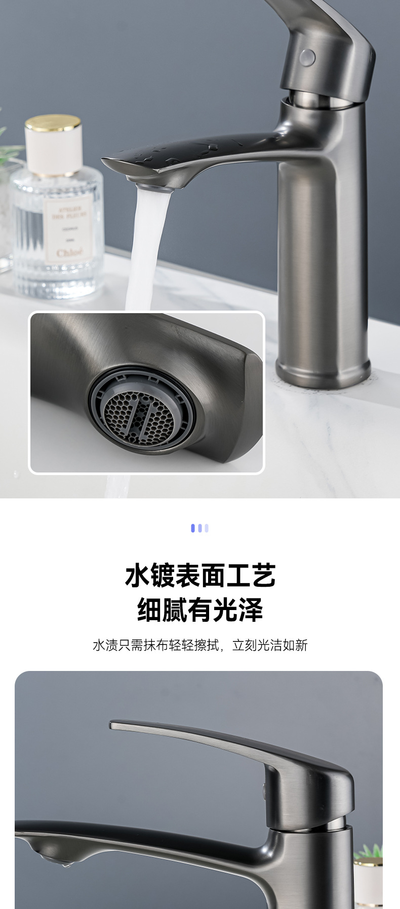 全铜芯面盆水龙头枪灰色卫生间洗手盆家用新款卫浴水龙头冷热轻奢