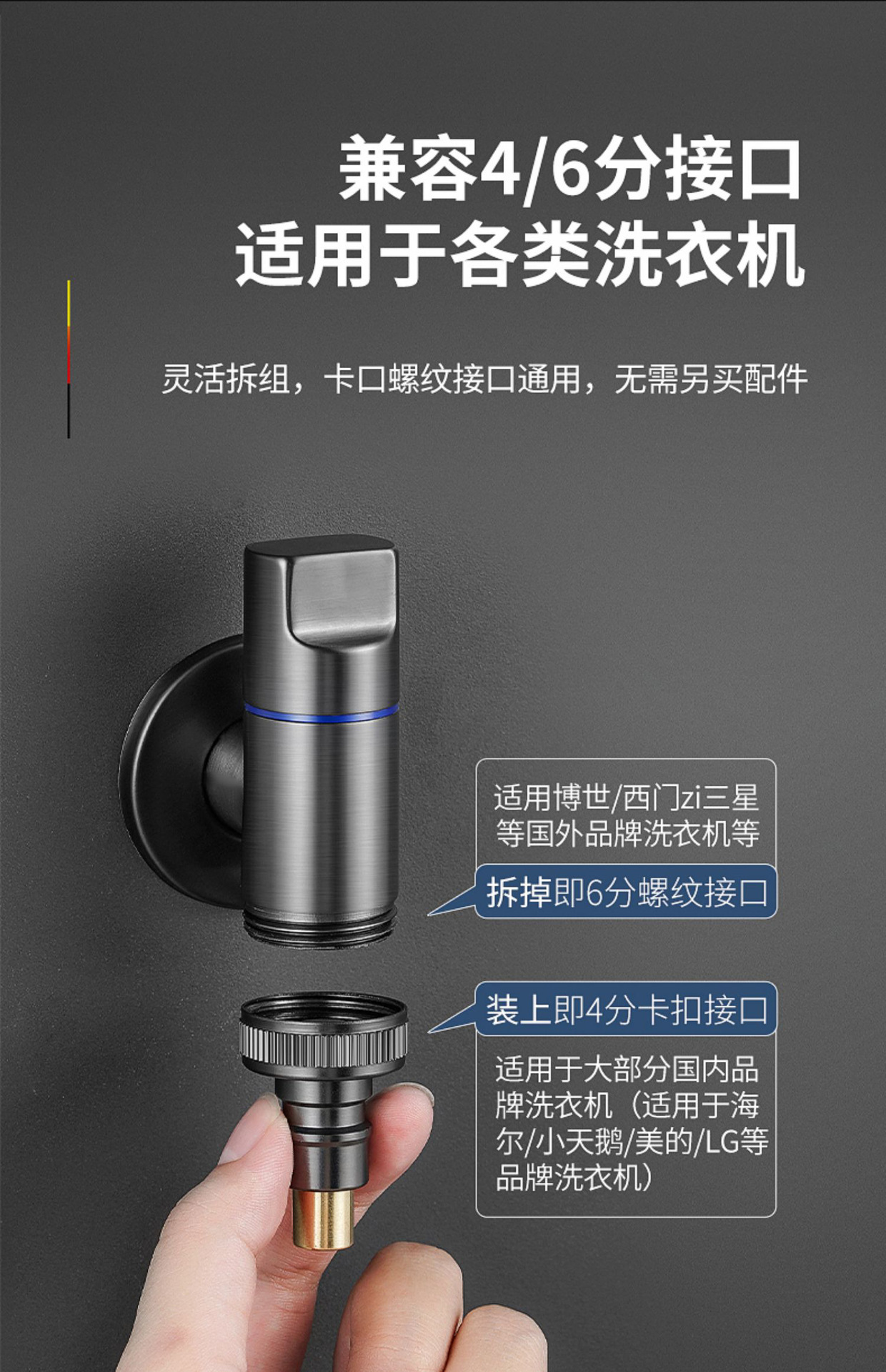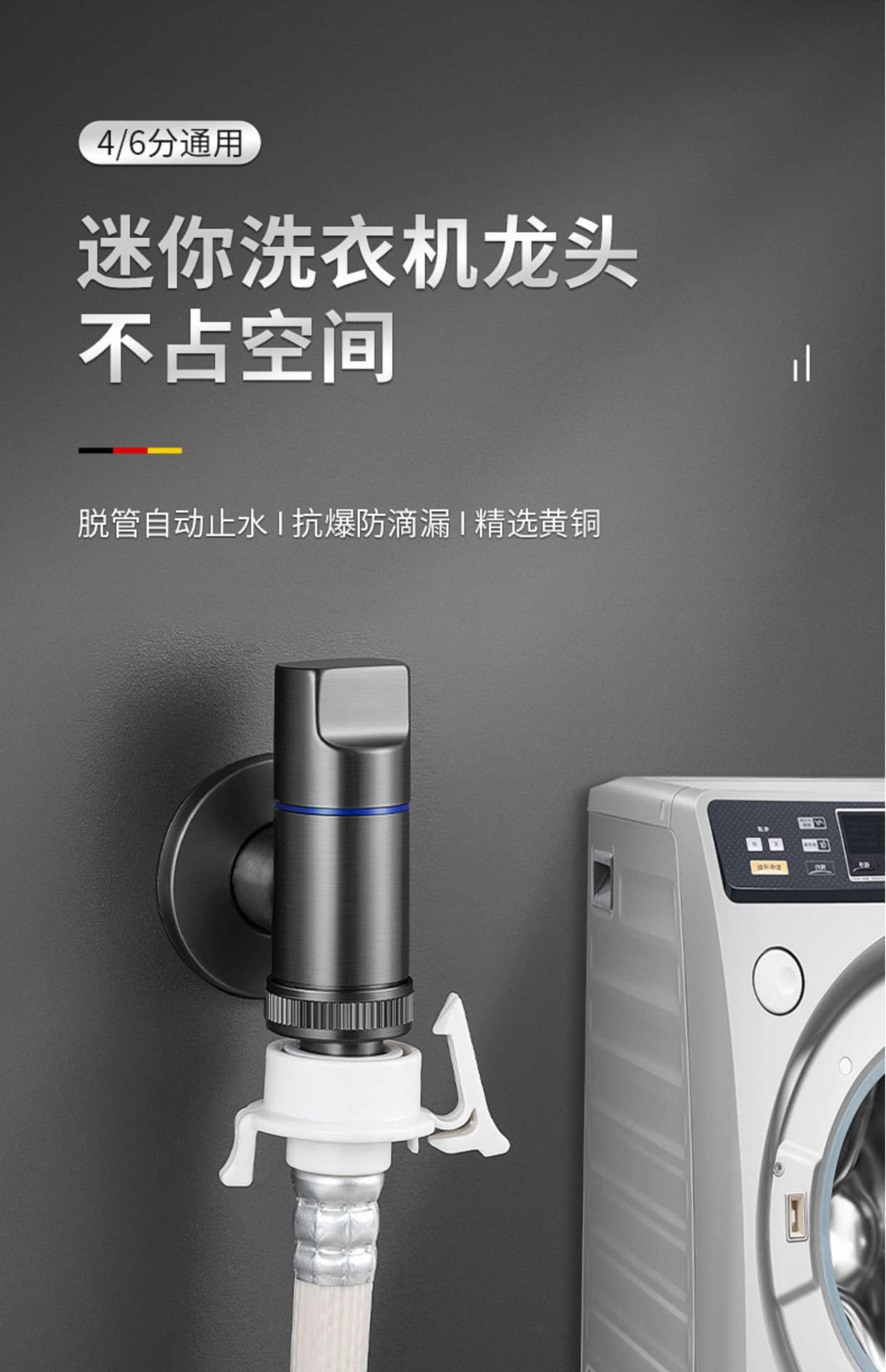【四六分通用】全铜电镀迷你洗衣机龙头【自动止水】