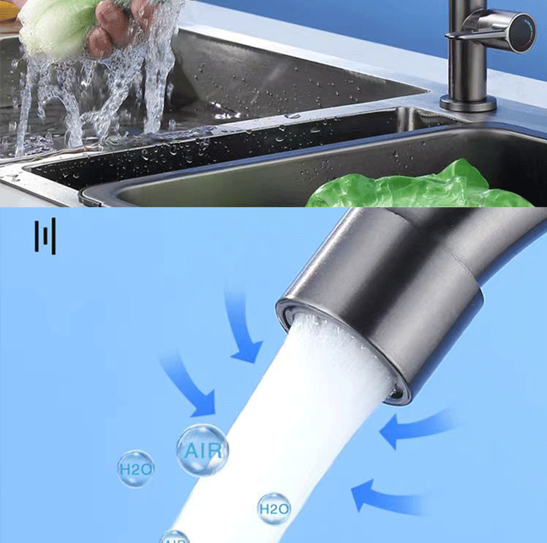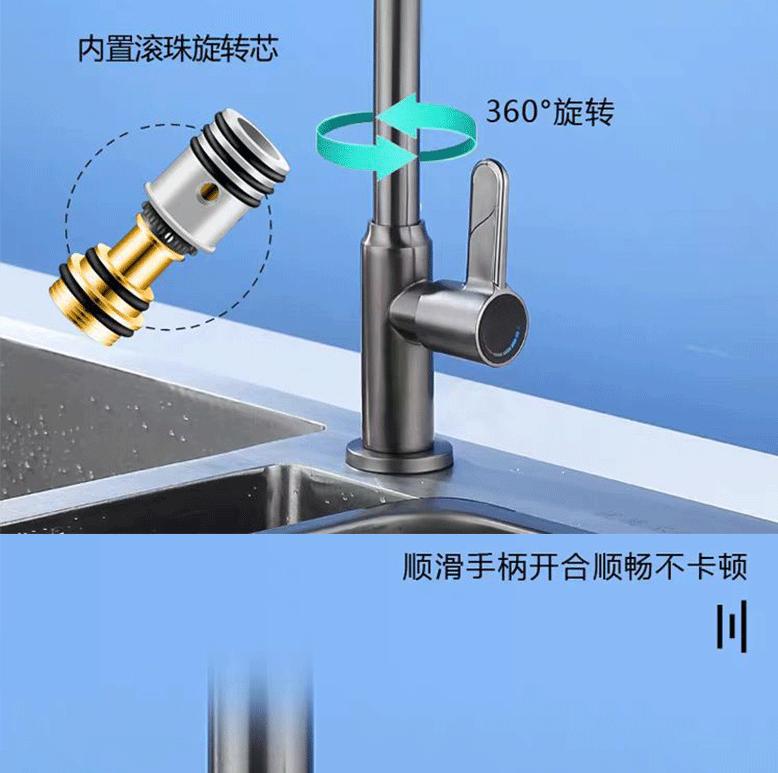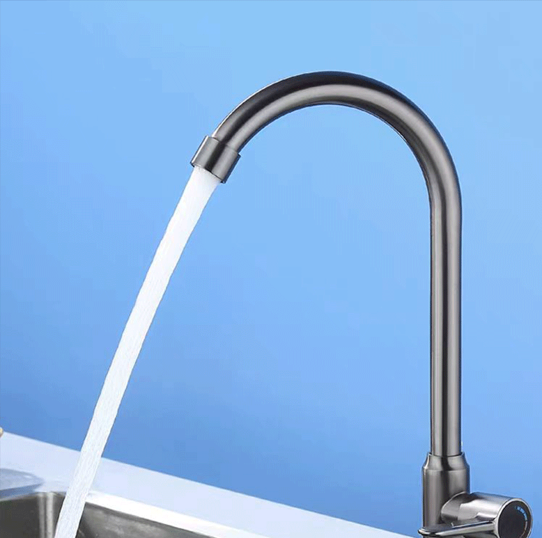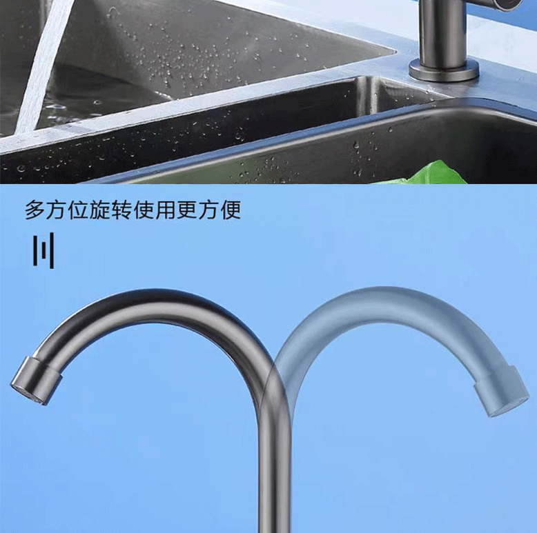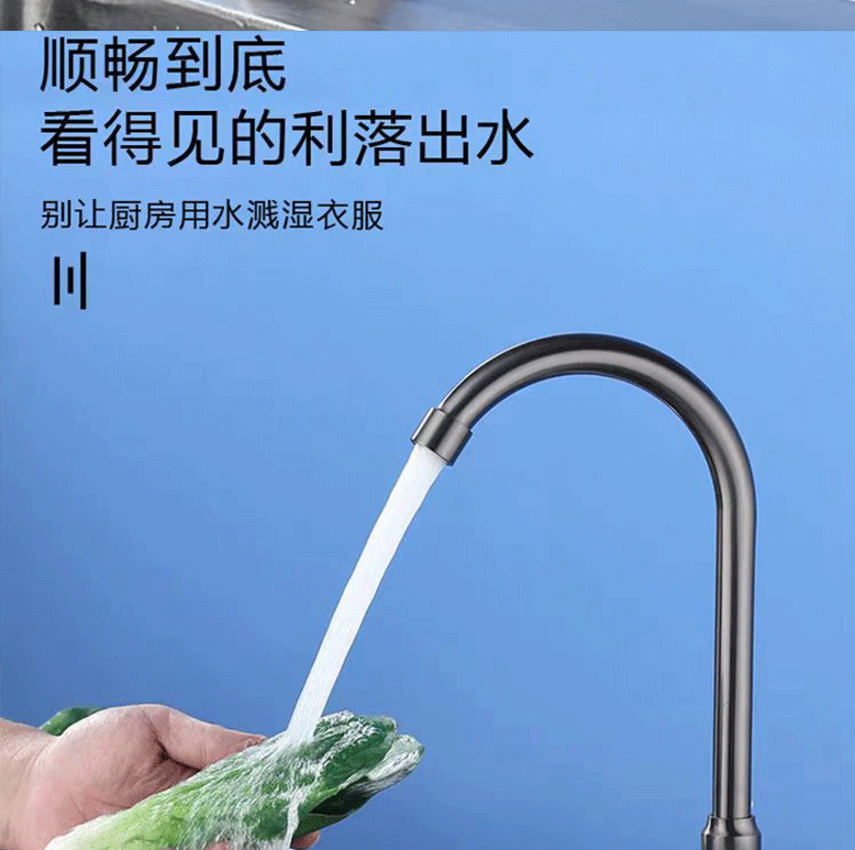 滚珠枪灰色厨房洗菜盆不锈钢单冷水龙头家用防溅水槽洗碗可旋转