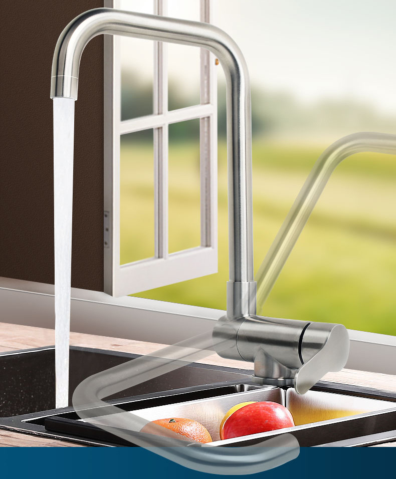 SUS304不锈钢厨房冷热水龙头水槽洗碗菜盆洗手池折叠内开窗可旋转