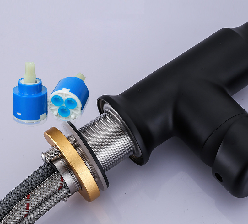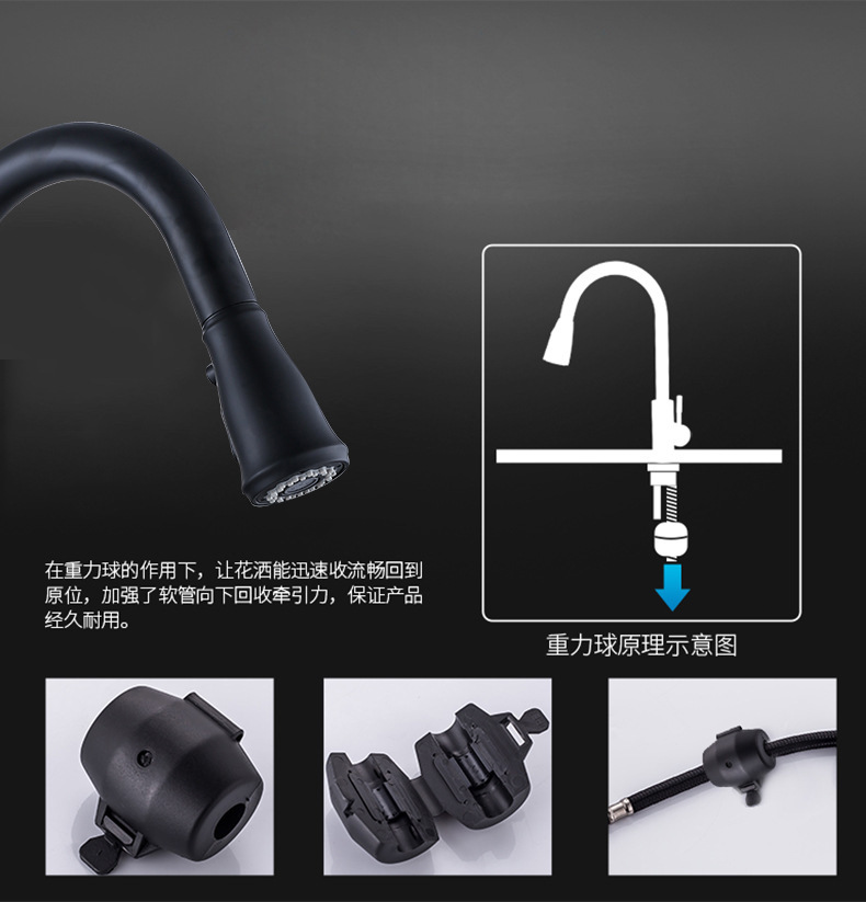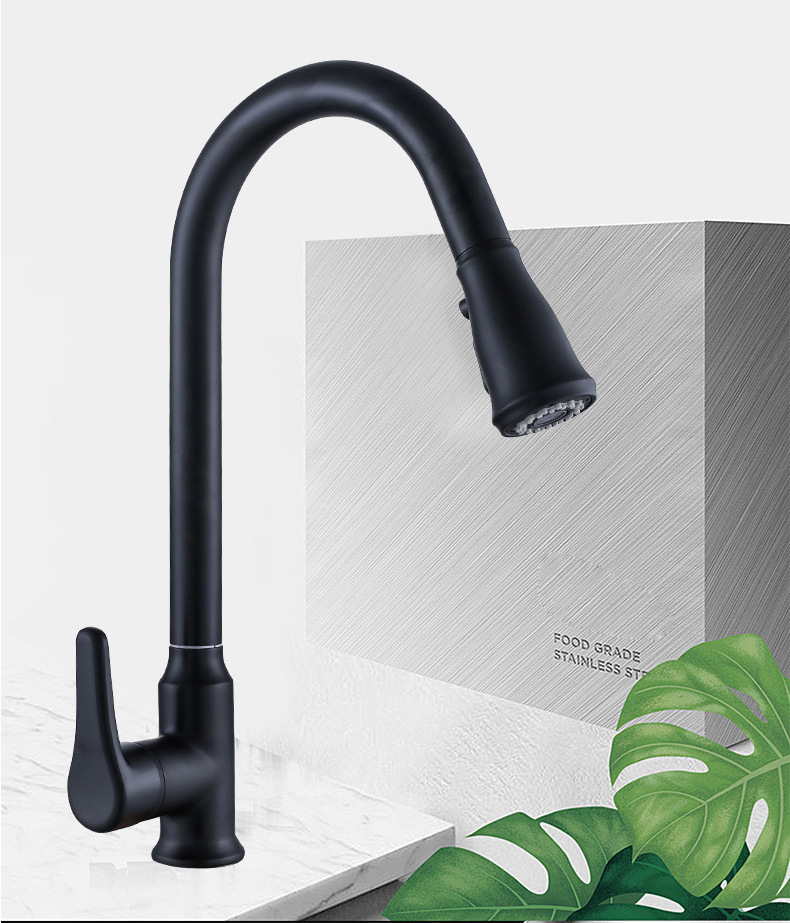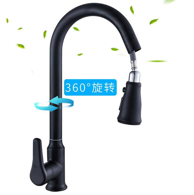 铜烤漆洗菜盆抽拉水龙头厨房水槽伸缩洗碗两档冷热水龙头家用