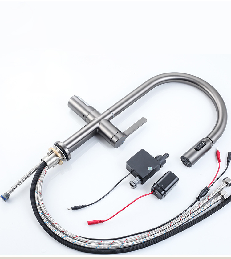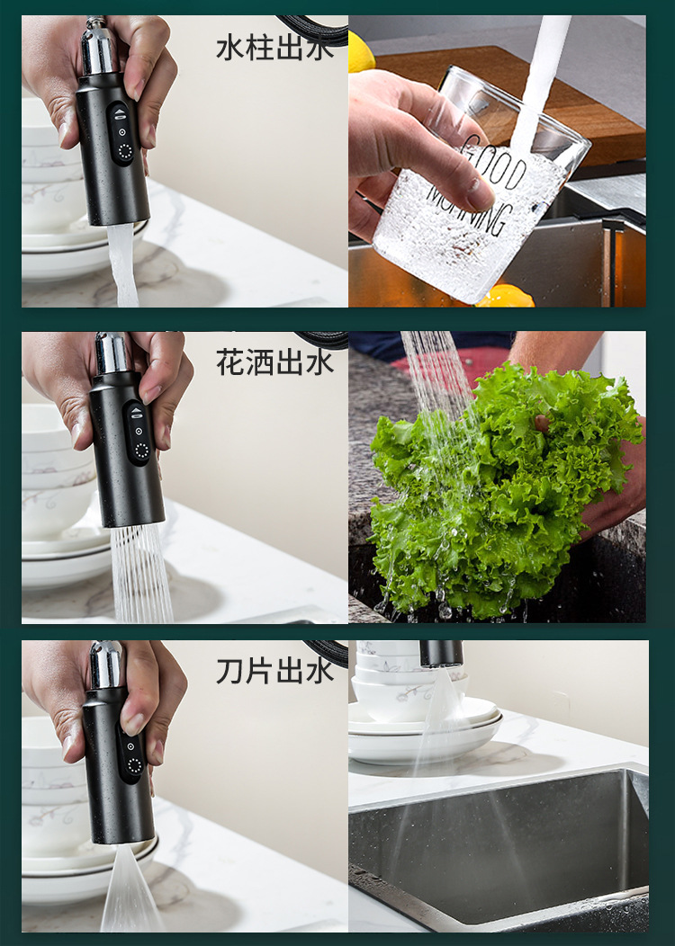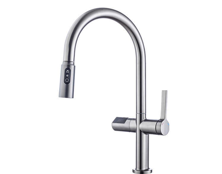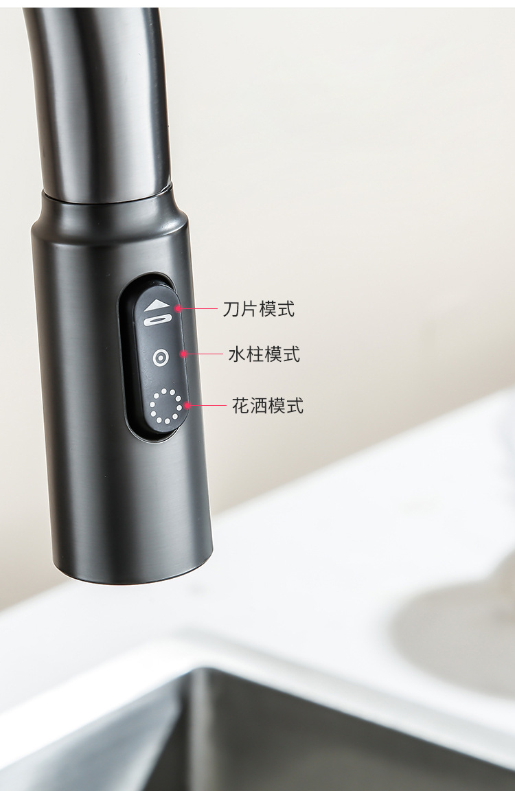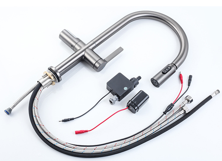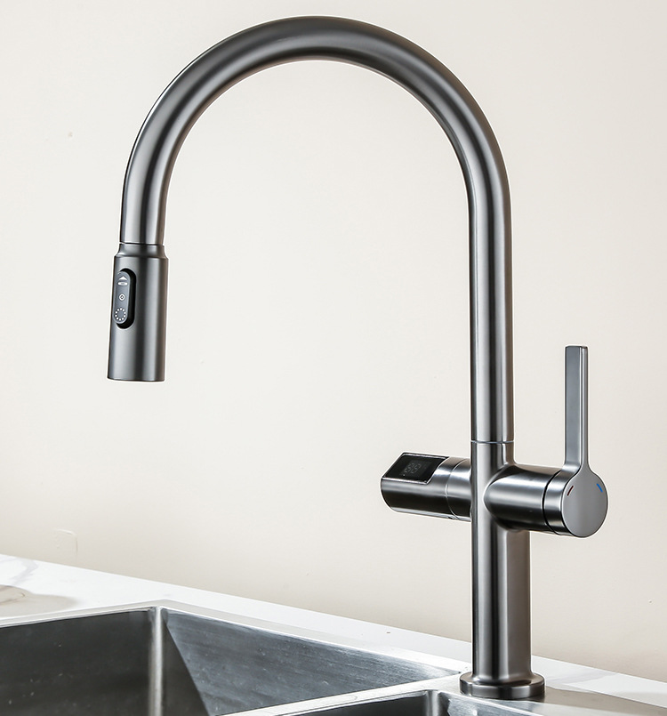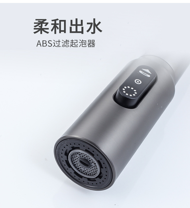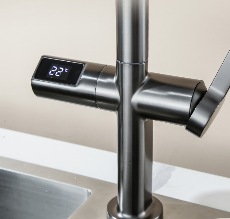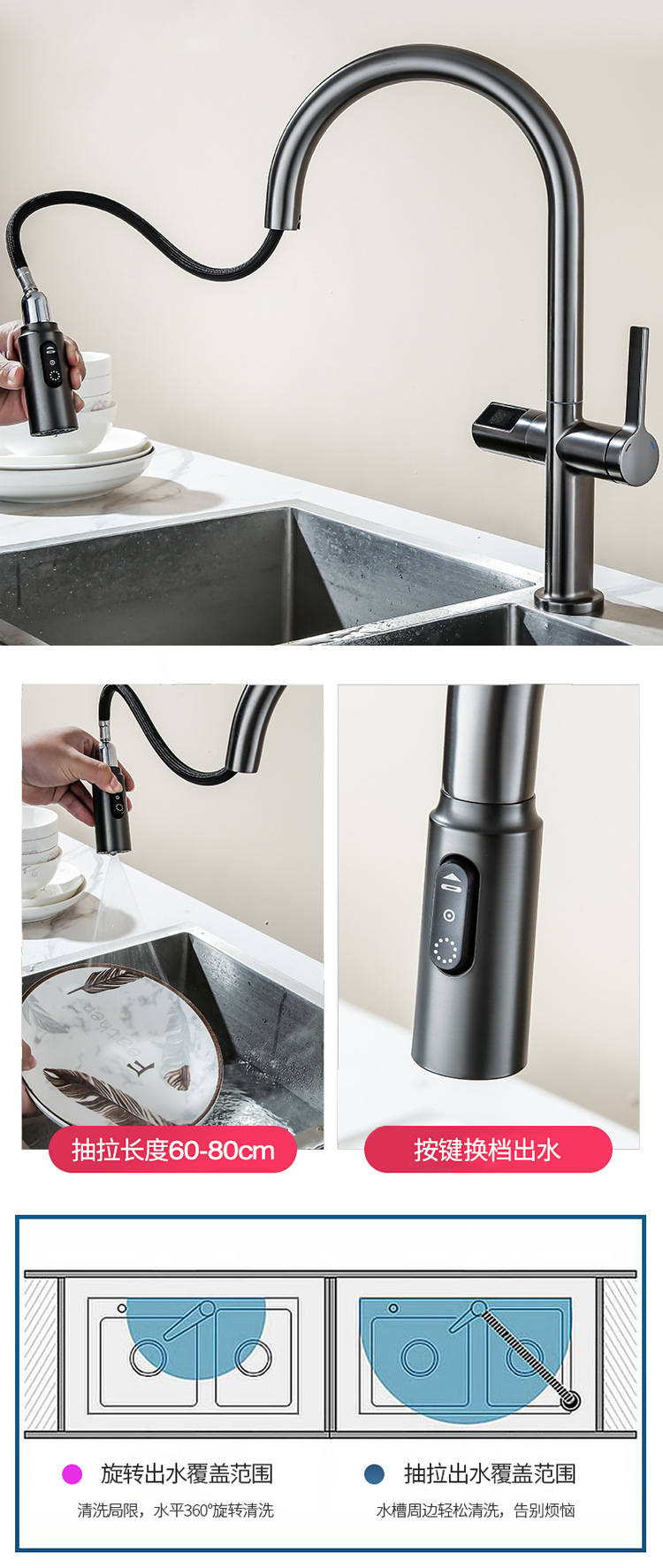 枪灰数显感应出水抽拉菜盆水龙头冷热三功能厨房洗菜盆水槽水龙头
