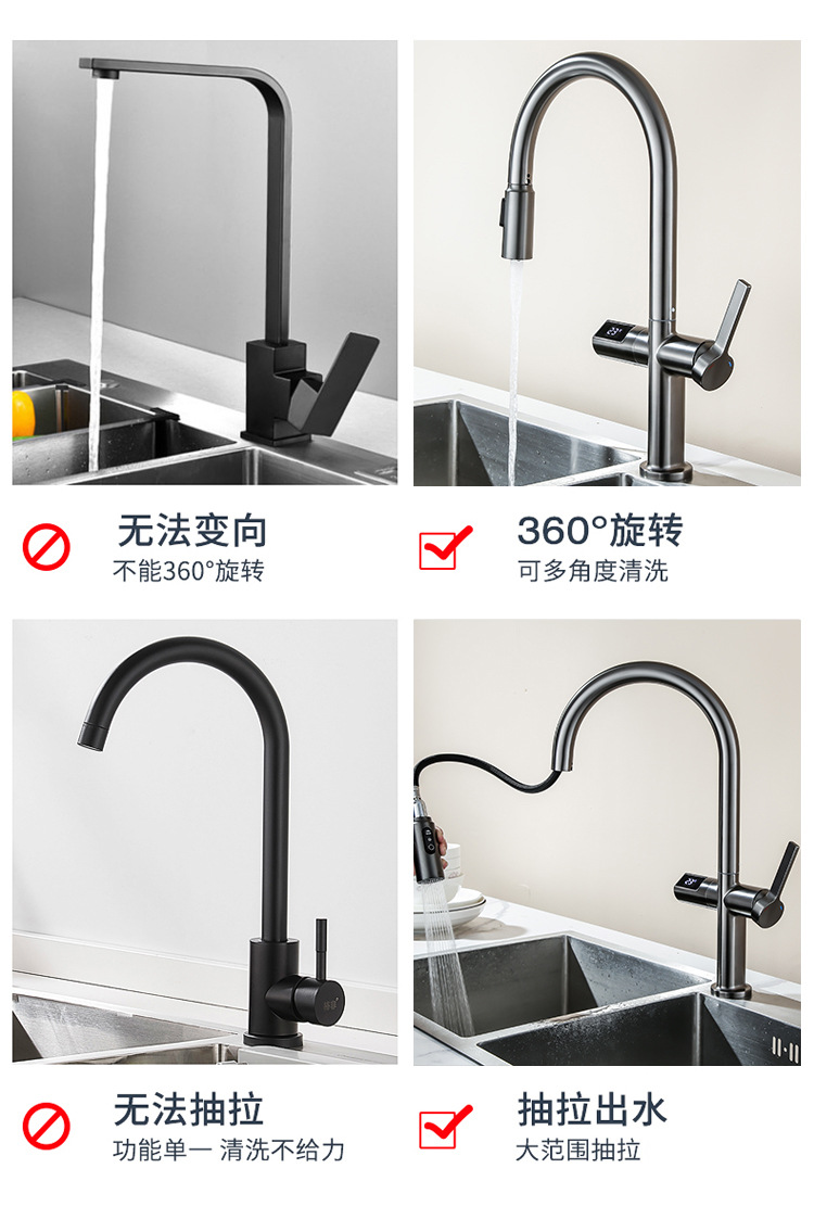 304不锈钢黑色厨房抽拉式水龙头旋转冷热烤漆伸缩洗菜盆龙头