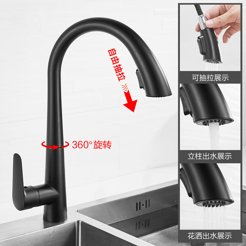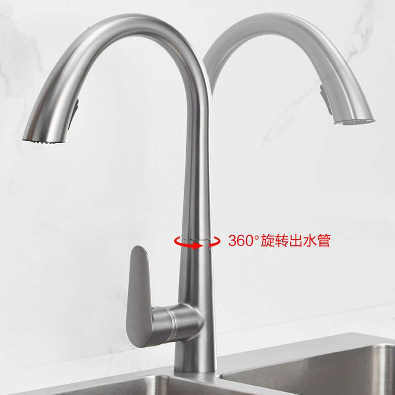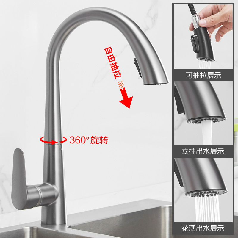 铜厨房枪灰色抽拉式水龙头家用万向伸缩洗菜洗碗池龙头