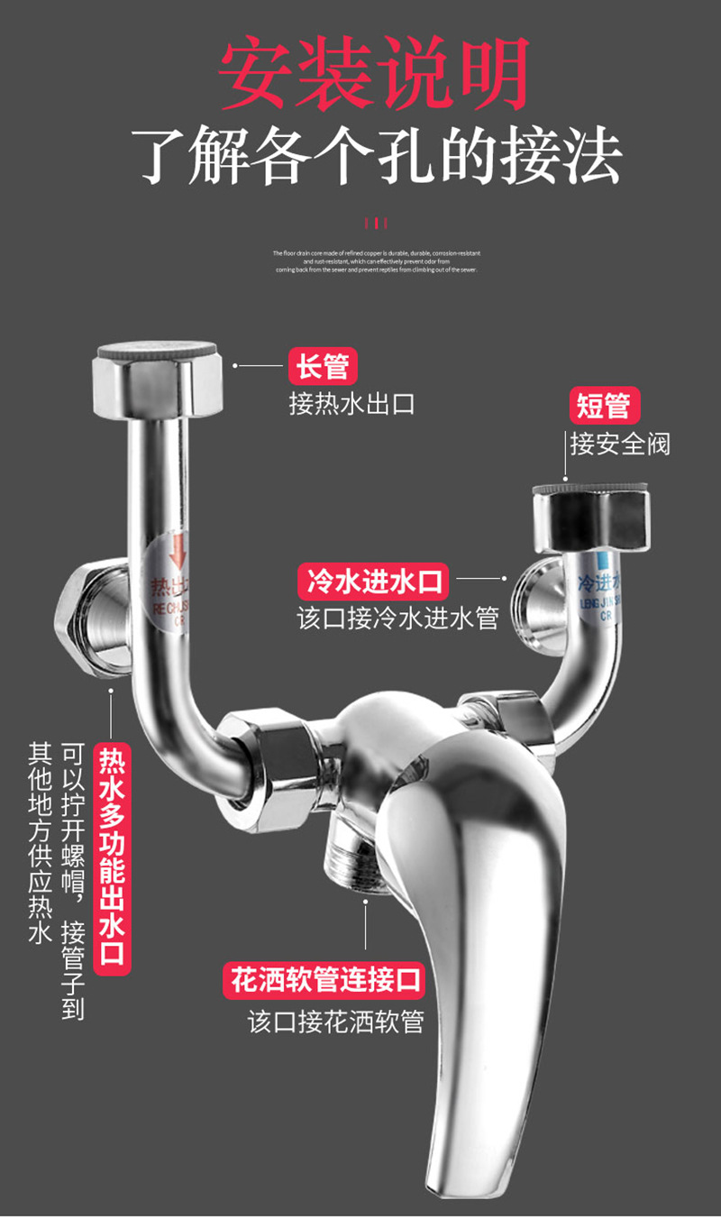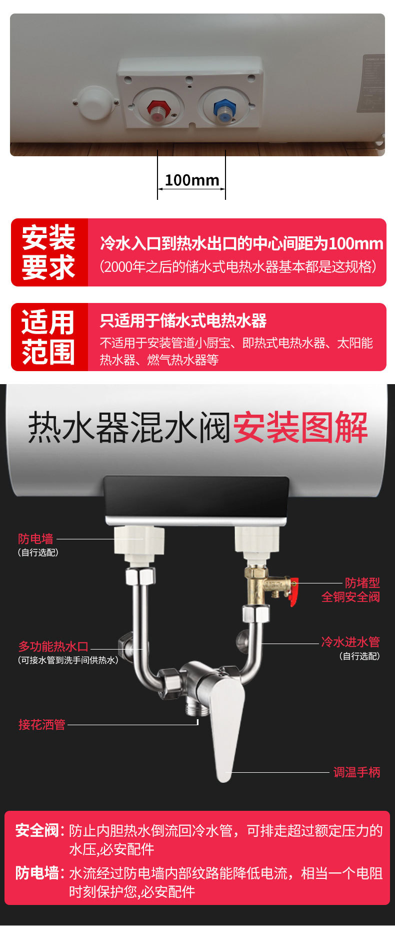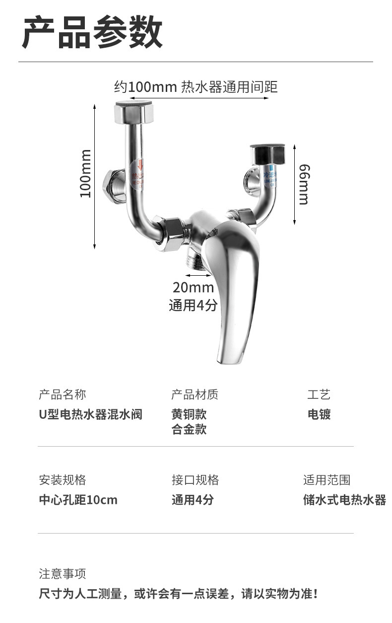 铜电热水器U型混水阀冷热水龙头配件明装通用淋浴混合开关不锈钢