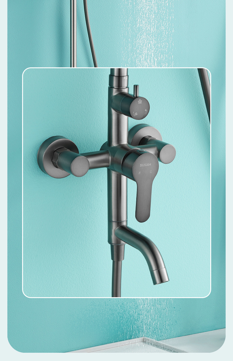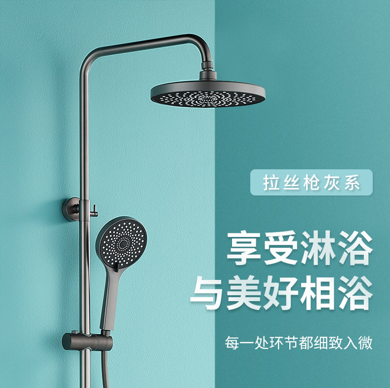 304不锈钢枪灰色淋浴花洒套装卫生间浴室冷热水龙头沐浴器家用