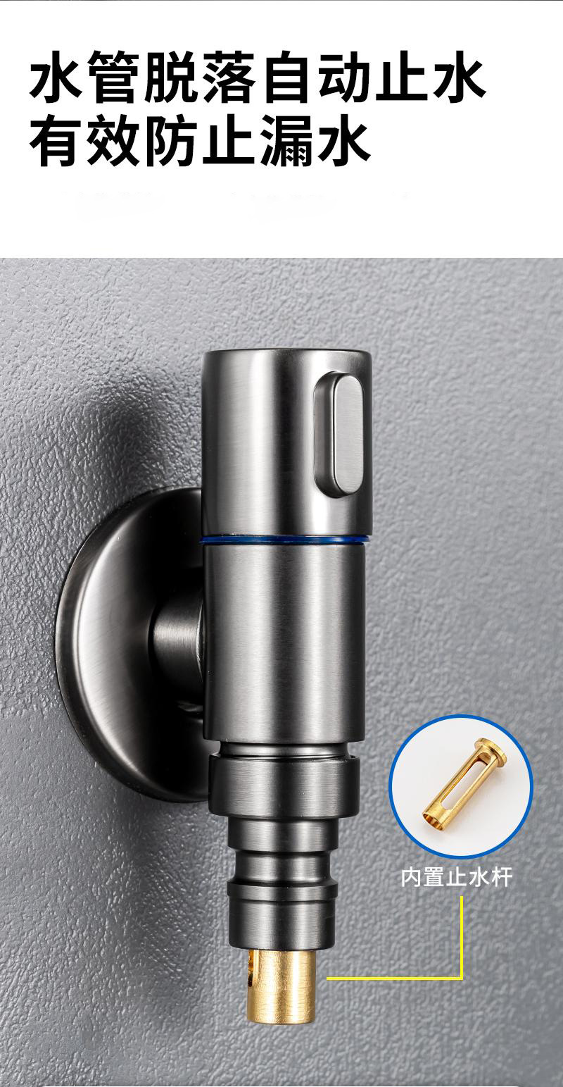 【枪灰款】不锈钢止水短T洗衣机龙头