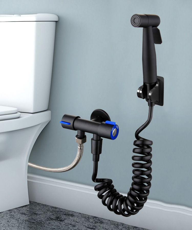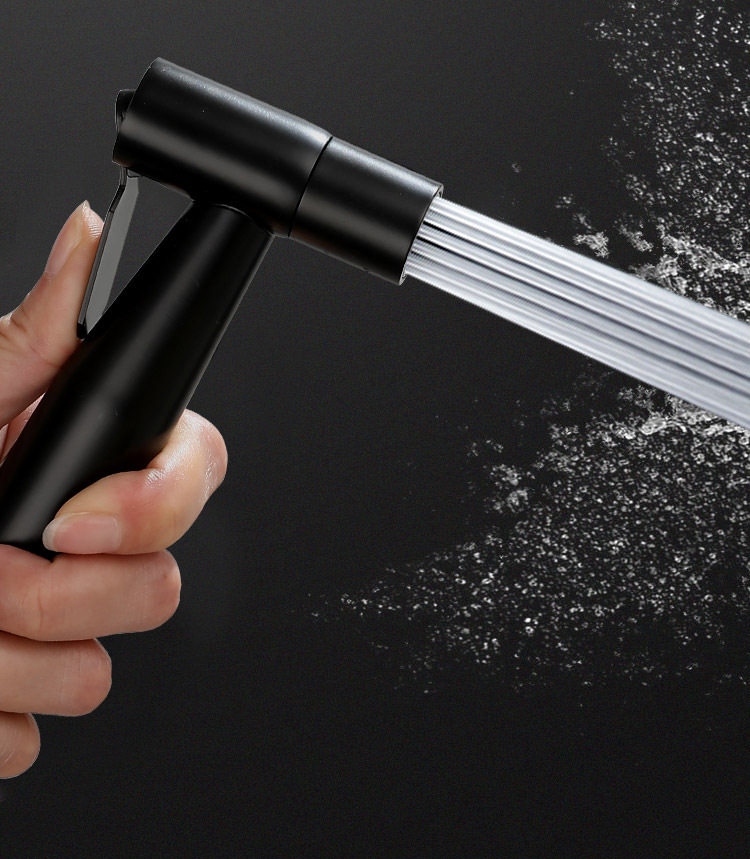 - 不锈钢黑色双用六角轮角阀+304黑色喷枪+黑色黏贴元宝座+1.5黑色淋浴管