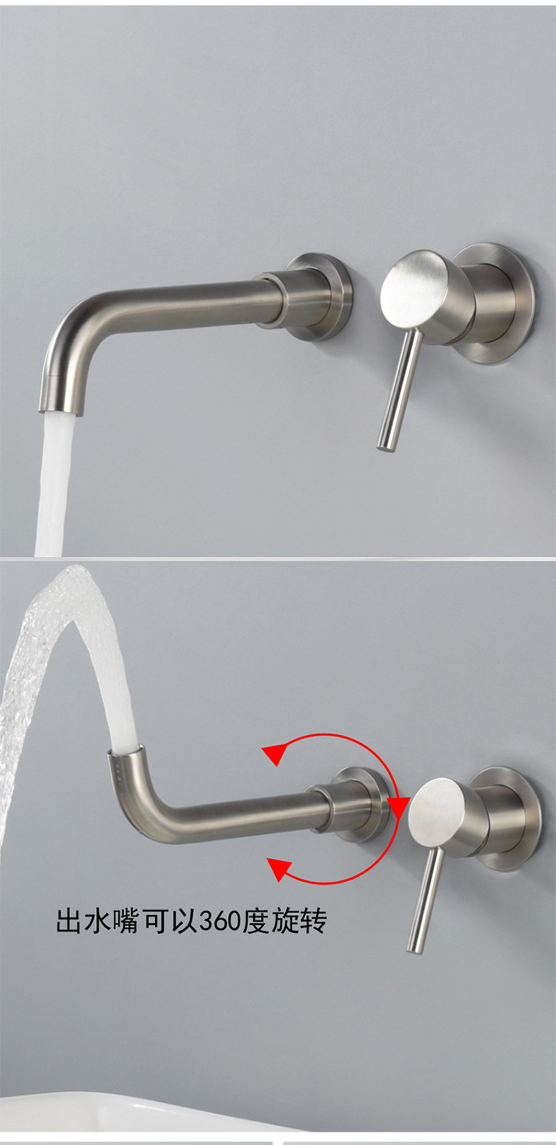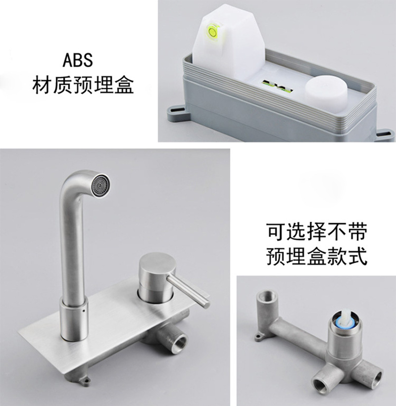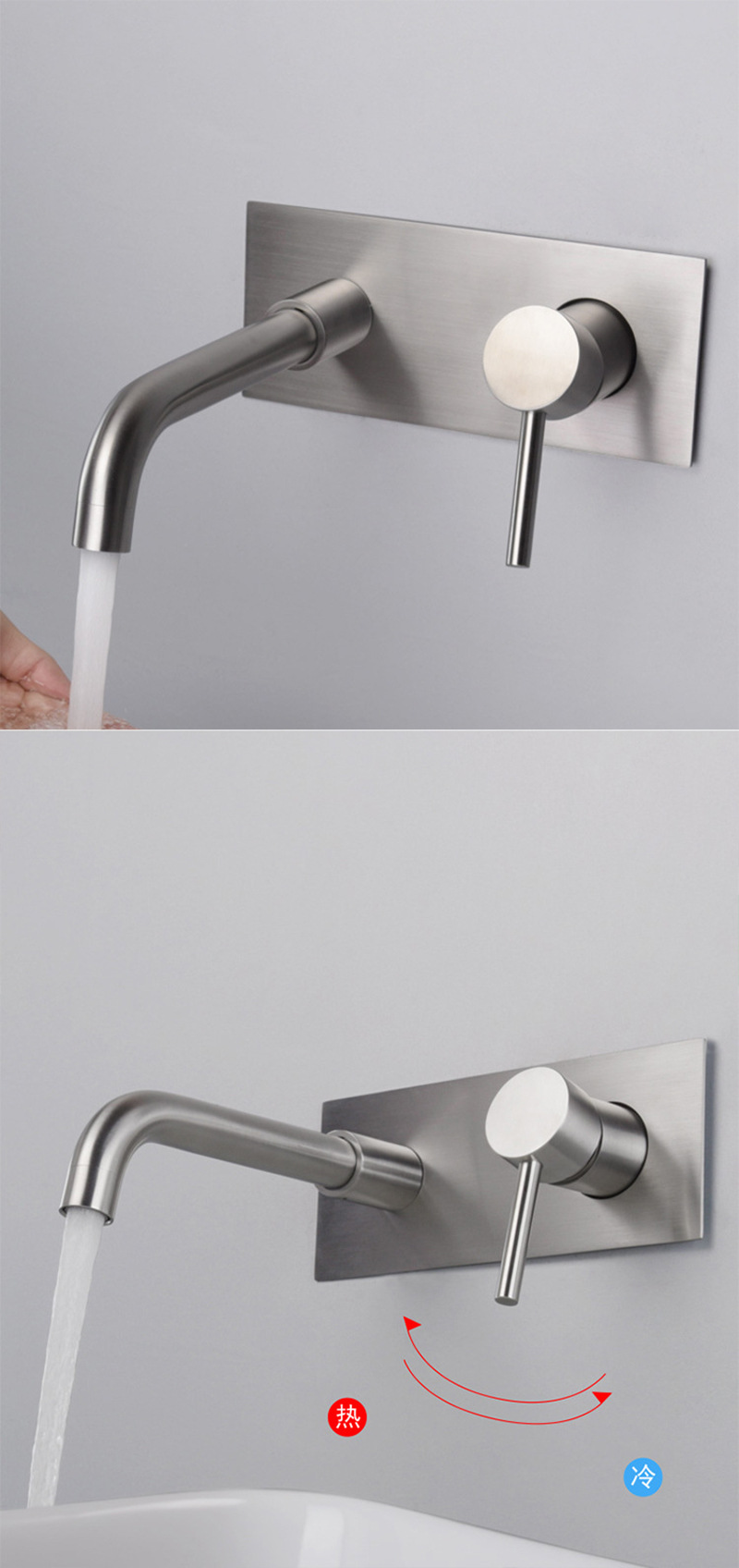 304不锈钢暗藏冷热入墙台盆水龙头挂墙墙出水面盆嵌入式暗装龙头