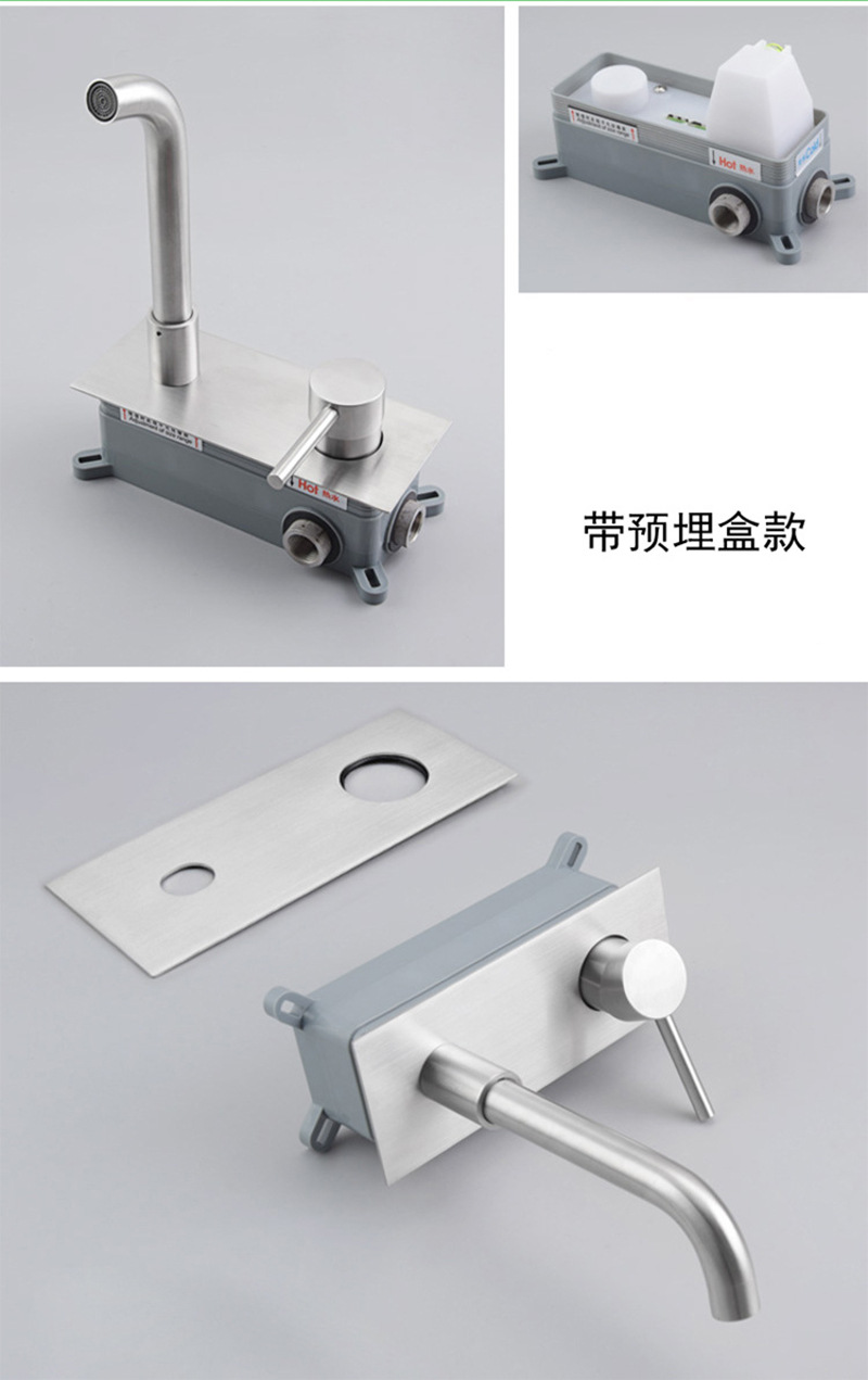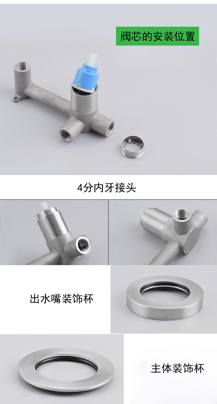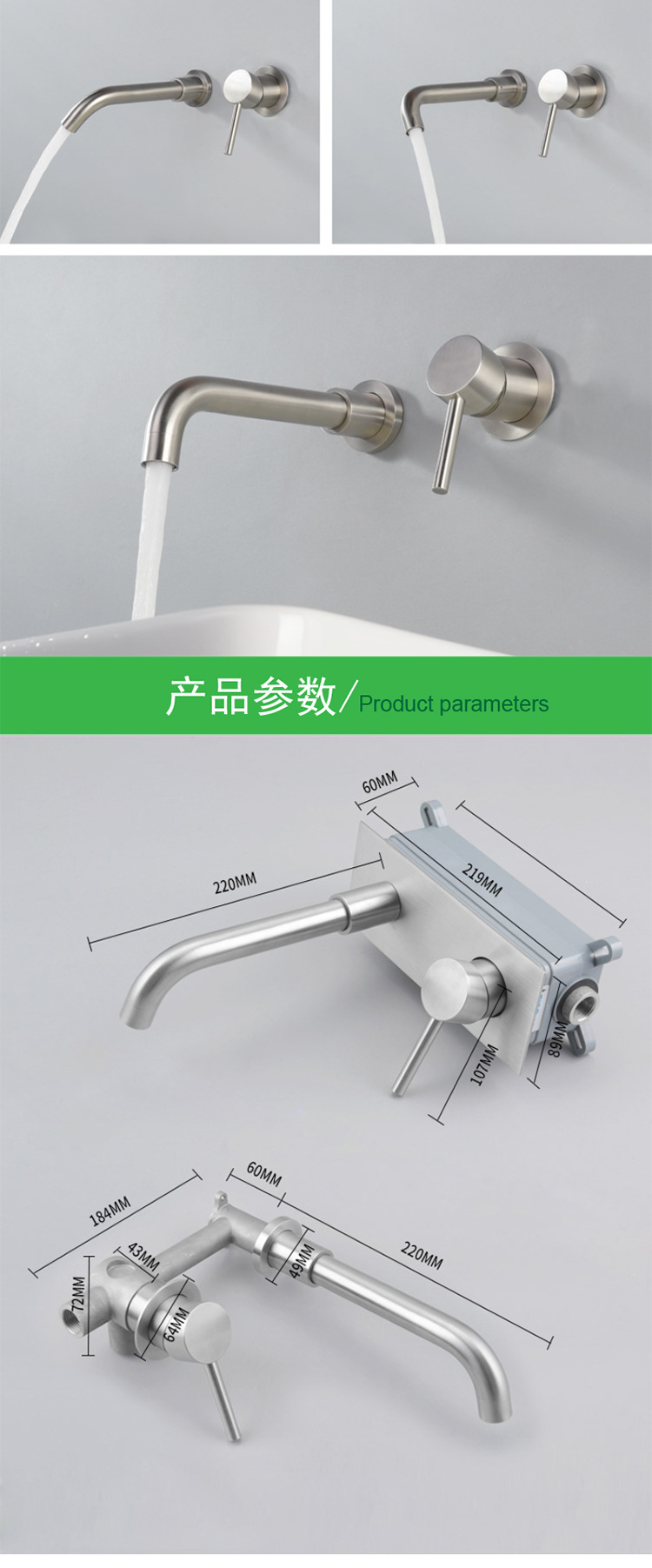 304不锈钢暗藏冷热入墙台盆水龙头挂墙墙出水面盆嵌入式暗装龙头
