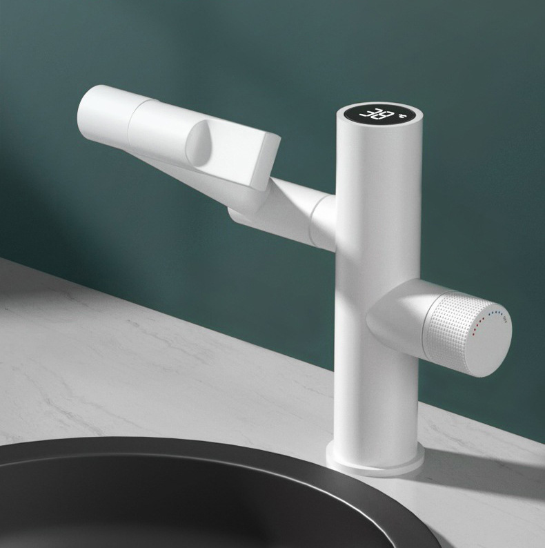 不锈钢白色 猫数显面盆龙头冷热枪灰色洗手洗脸盆水龙头洗头漱口
