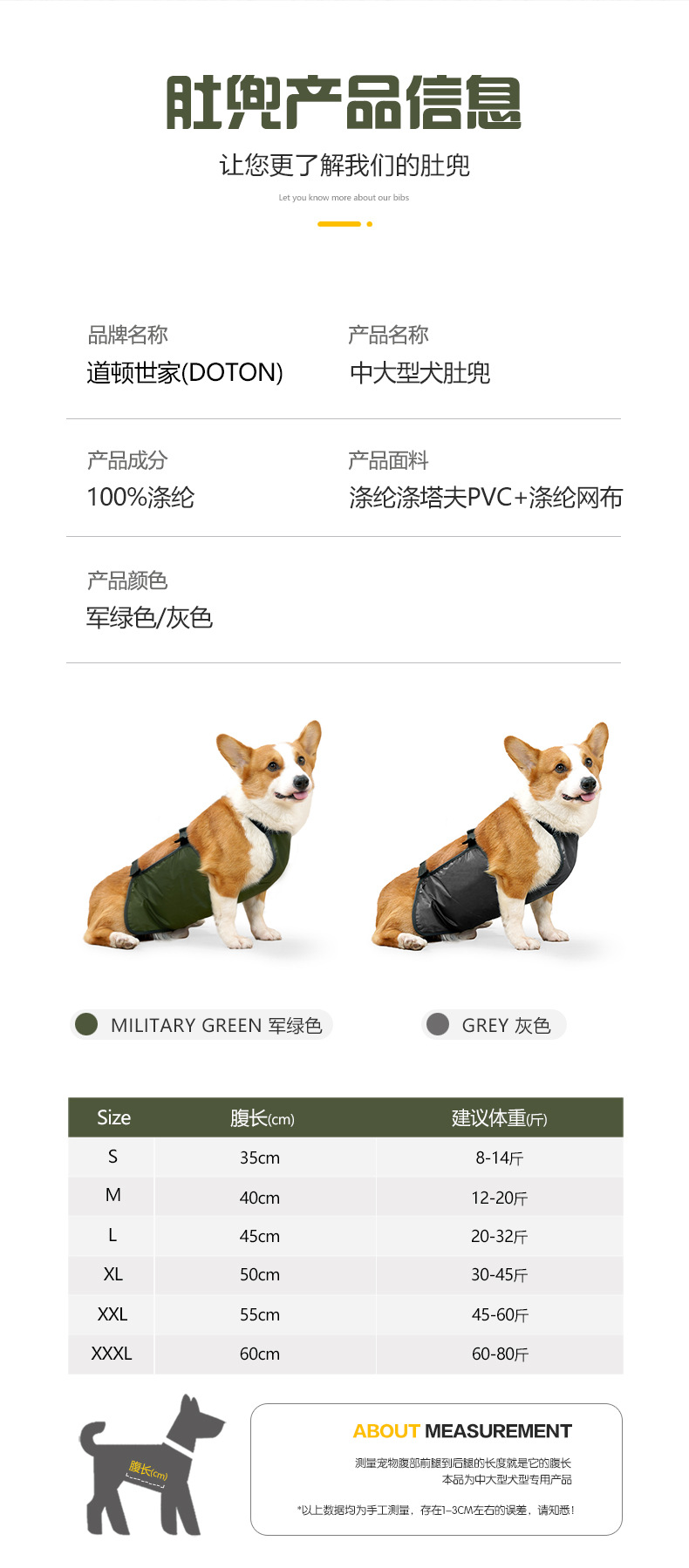 狗狗肚兜四季出行防脏防水柯基肚兜魔术贴可调节狗围兜保护肚子