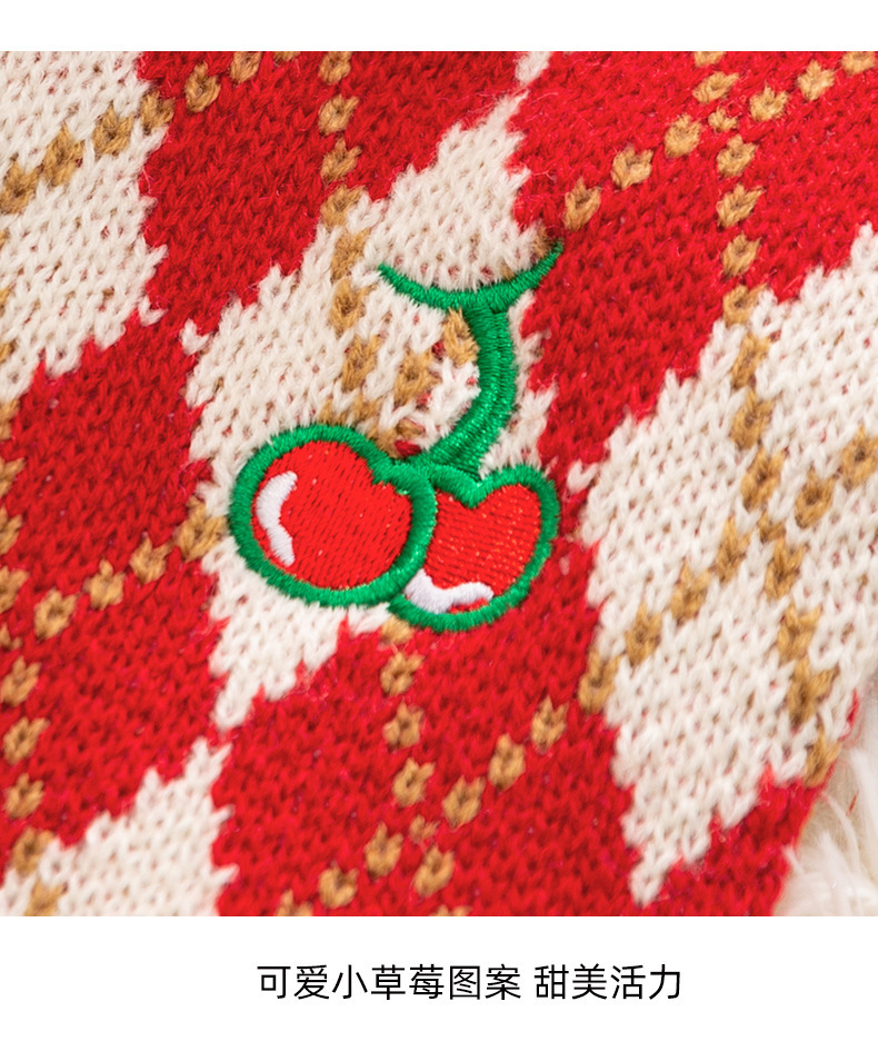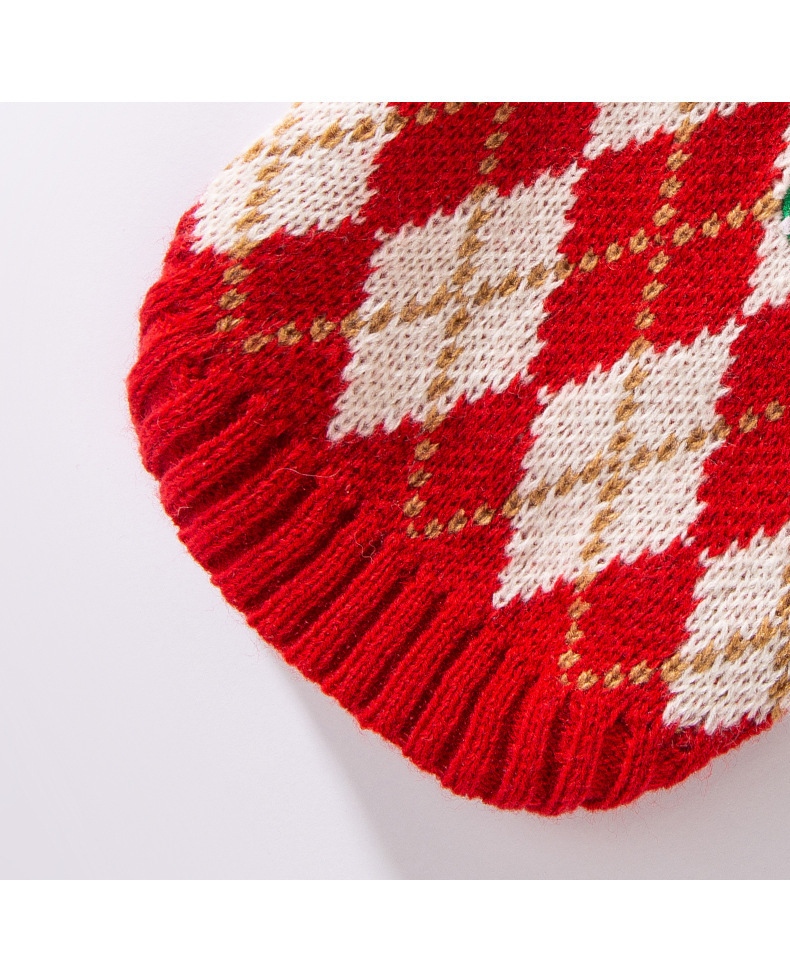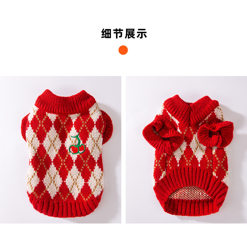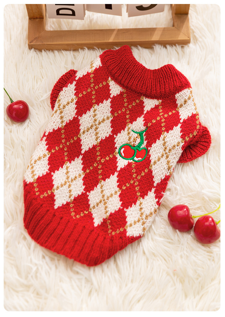 秋冬季猫狗加厚保暖衣服菱形刺绣樱桃小飞袖毛衣中小型犬猫咪衣服