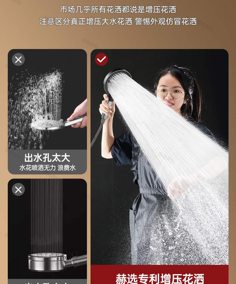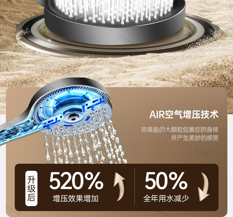 增压淋浴花洒喷头超强加压卫生间浴室家用热水器大面板手持莲蓬头