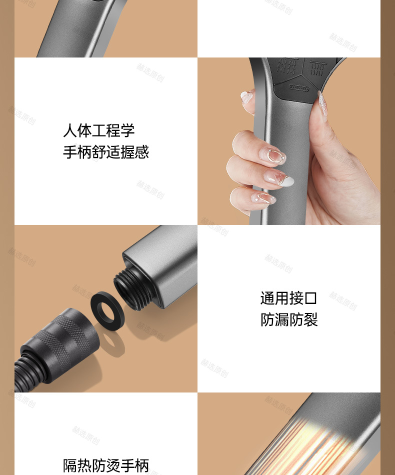 - 【钛金灰套装5】增压花洒+2.0米防爆软管+免打孔支架