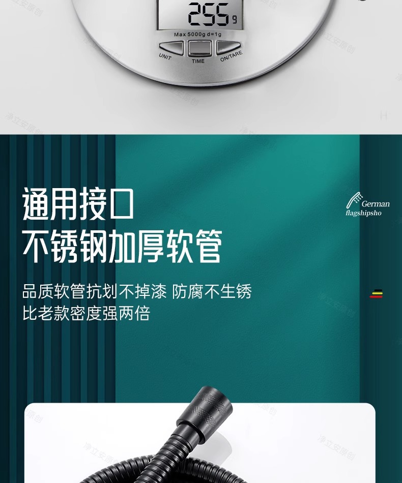 - 【典雅黑套装4】增压花洒+2.0米防爆软管