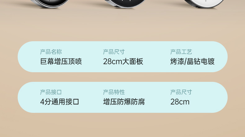 - 圆形◆雅黑【顶喷+手喷+软管+支架】10年用坏包赔