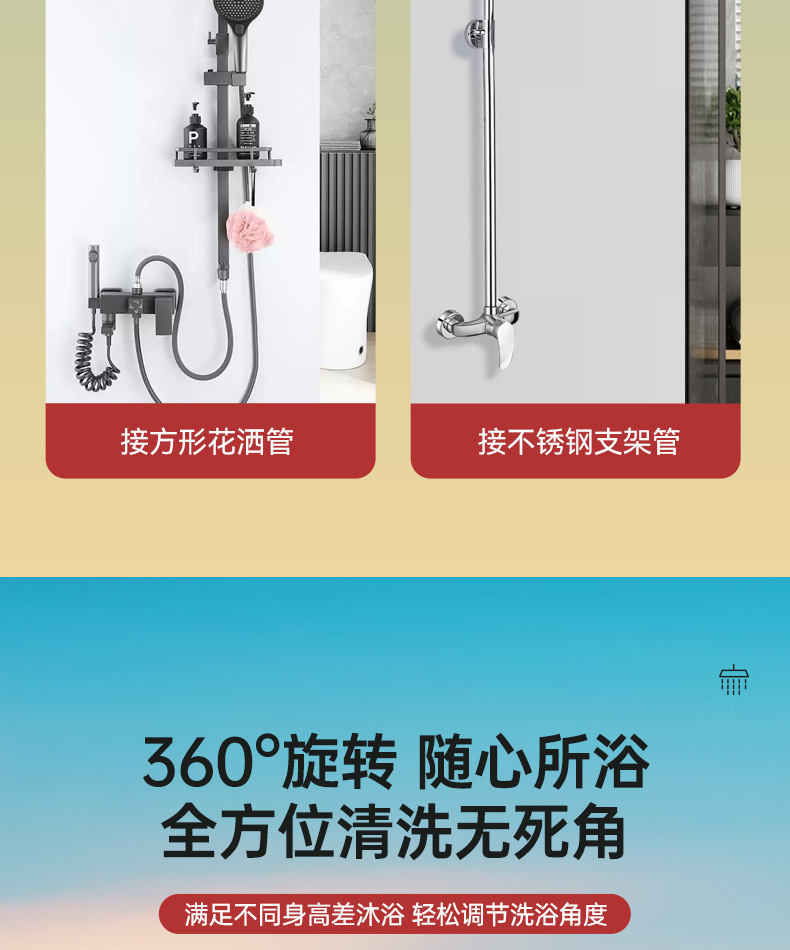 - 方形◆雅黑【顶喷+手喷+软管+支架】10年用坏包赔