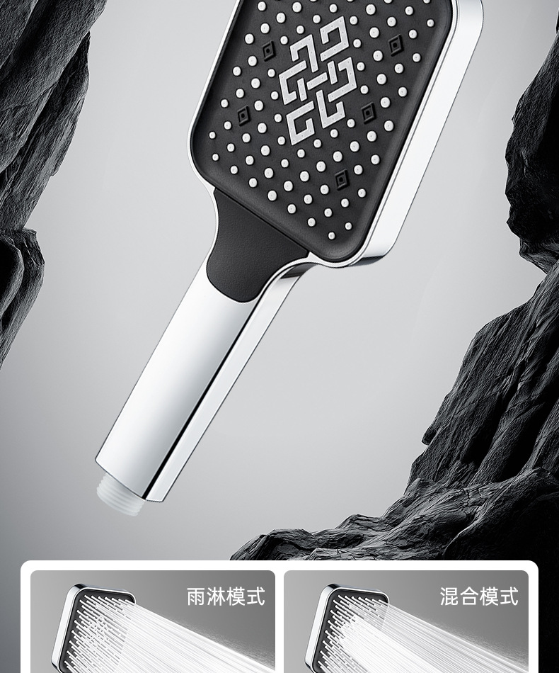 - 【银黑套装1】方形增压超大顶喷+增压4档花洒