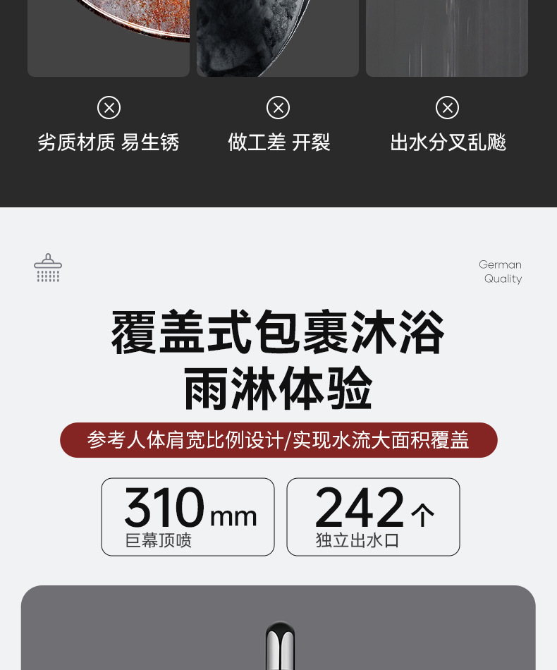 - 13英寸●方形银黑顶喷【增压大出水 质保20年】