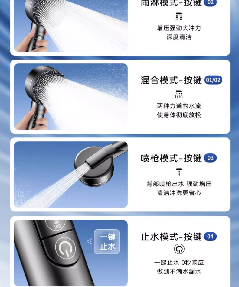 - 【亮银色套装3】涡轮四档增压花洒+支架