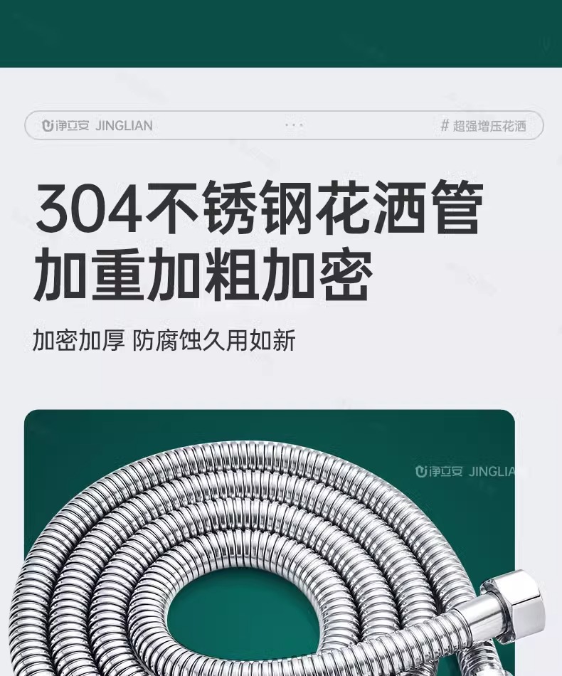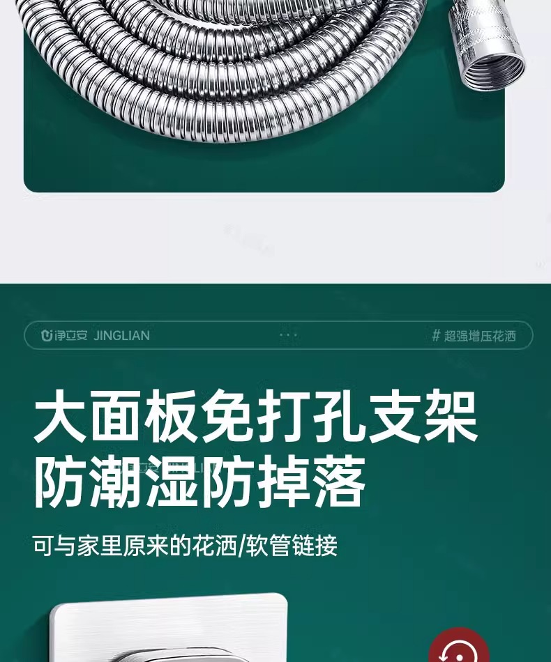 - 【大面板套装3】银色五档增压花洒+1.5米软管+支架