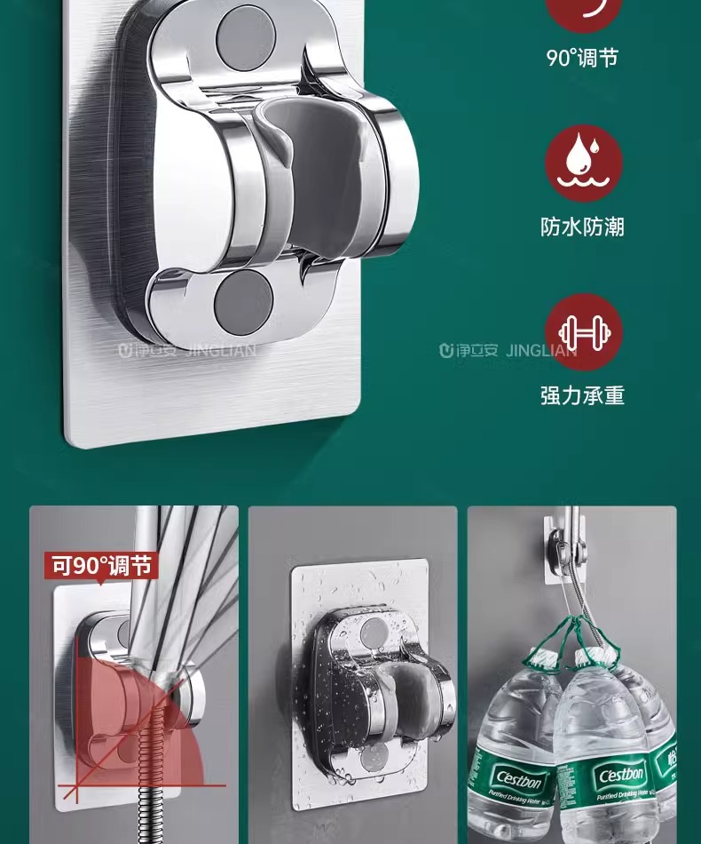 - 【大面板套装2】银色五档增压花洒+免打孔支架