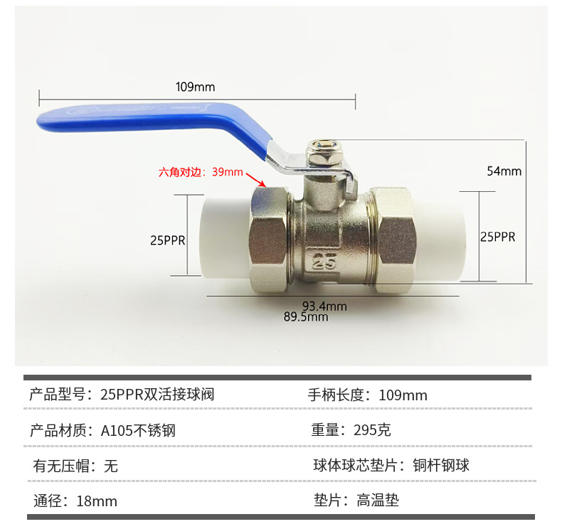 不锈钢锻钢25PPR双活接球阀