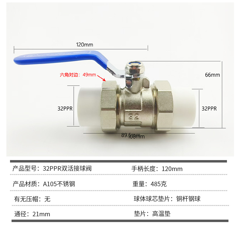 不锈钢锻钢32PPR双活接球阀