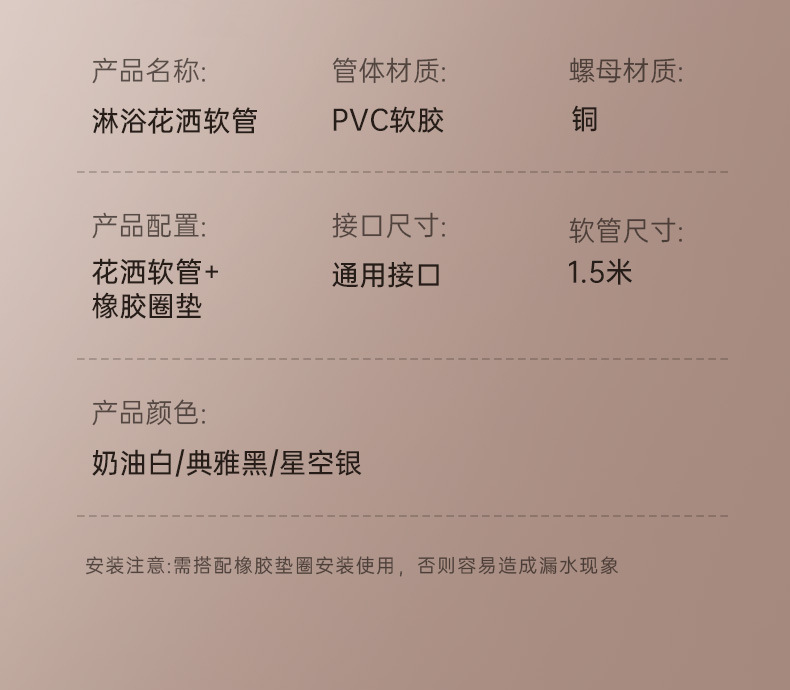 - 【雅黑色套装2】2.0米PVC管+五档增压花洒