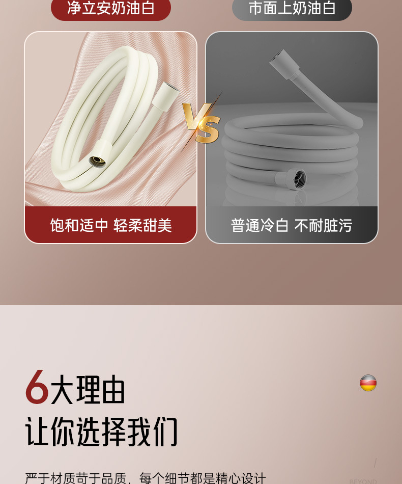 - 【奶白色套装2】2.0米PVC管+五档增压花洒